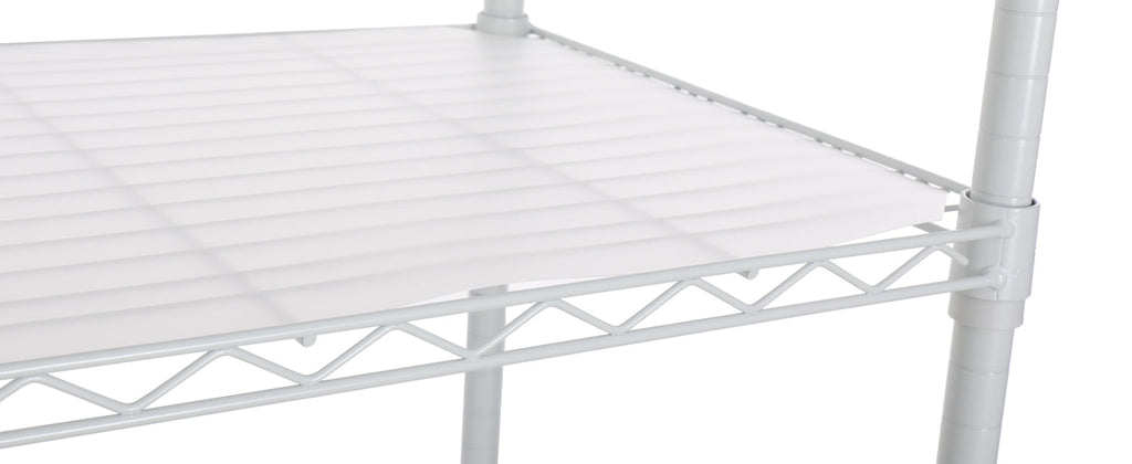 - [7 TIER LARGE CAPACITY] - Heavy duty shelving with leveling feet - each layer shelf can hold 350lbs (evenly distributed), maximum load capacity is 2450 lbs. It is recommend that heavy items on the bottom shelf for maximum stability. 7 shelf Liners choice of beautiful and fun transparent colors allow you to add a pop of color to your life. Shelf Liners is waterproof - Won't get damaged from exposure to moisture.