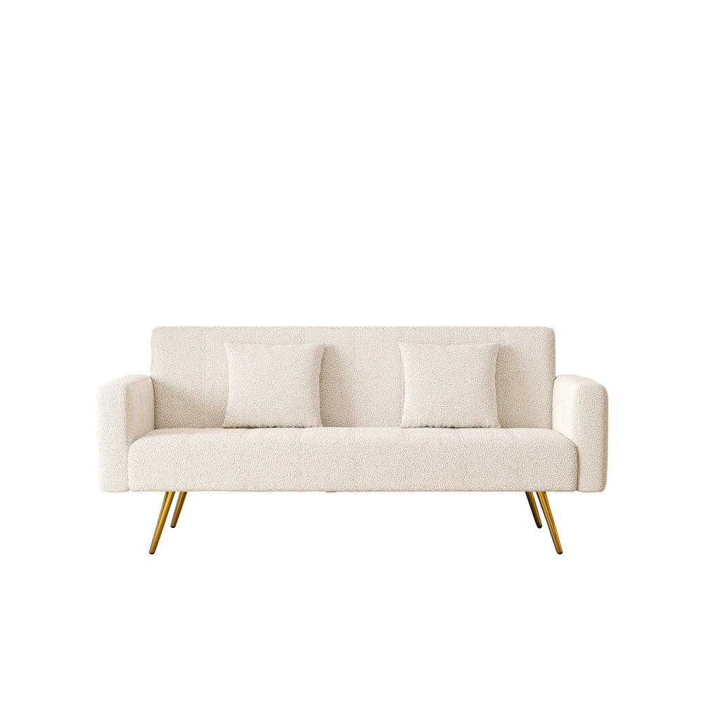 71.7 inch beige teddy fleece sofa bed Bring two throw pillows