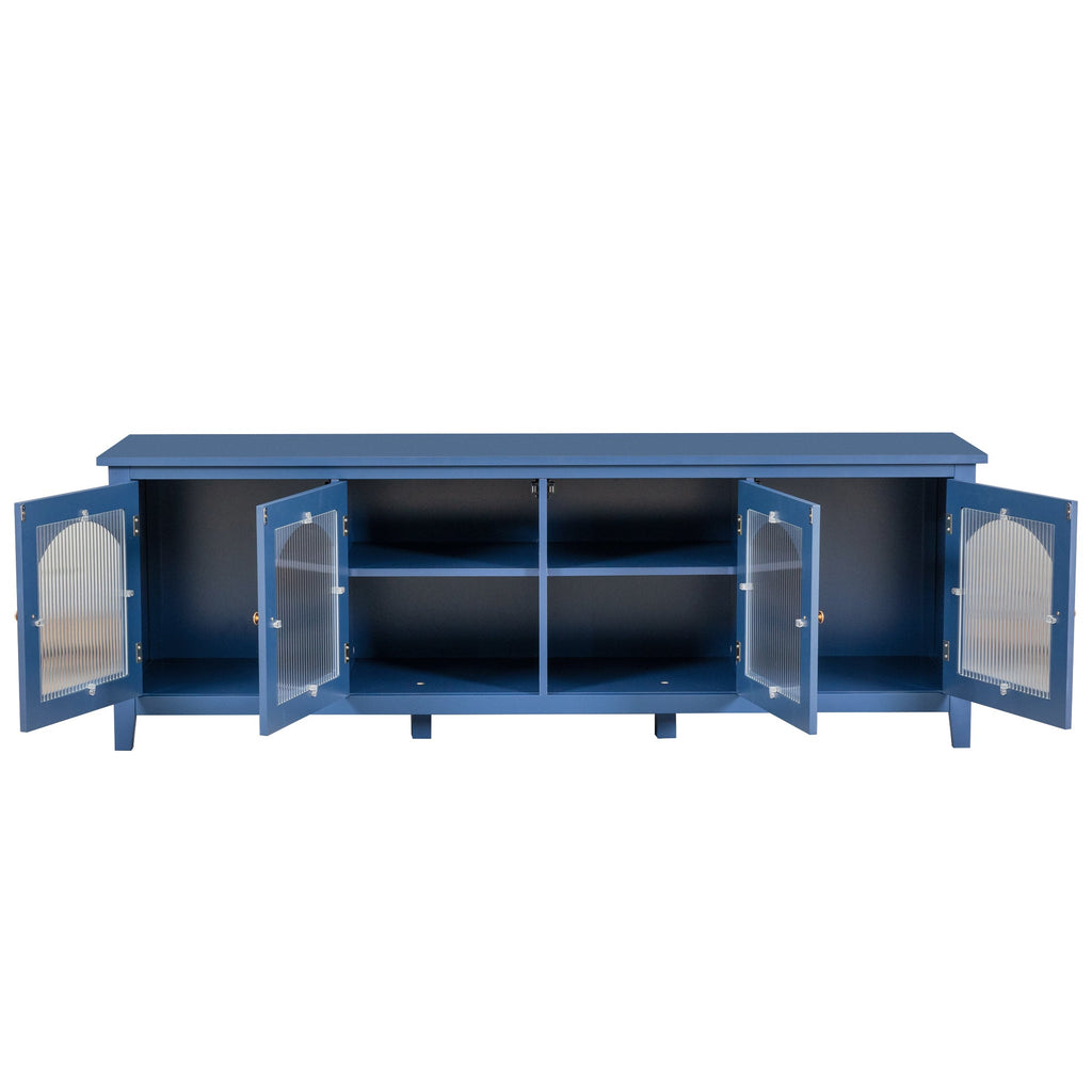 71-inchstylishTVcabinet Entertainment CenterTV stand,TVConsoleTable, Media Console,solidwood frame,Changhong glass door,Metal handle,antique blue,canbeplacedin the children's room,bedroom Living Room