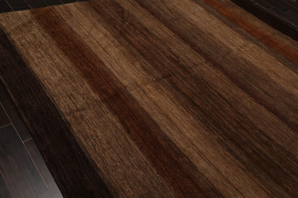 Gabbeh rugs were originally made by women from tribes in the south-west of Persia. Gabbah literally means unclipped, a reference to the shagginess of the pile. Rustic simplicity and indeed a certain willfulness of design give the rugs an unaffected freshness which is most sought after, especially for use in a modern decor. Original designs were very basic with only a limited number of decorative patterns, mostly geometric mix of objects resembling animals, humans (kids) or trees (abstracts), coarsely knotted with brightly colored wool. Tree designs crop up time and again in nomadic weaves. Their form is never standardized. Asymmetric and symmetric knots are often used in the same rug.. But with their natural woolly texture, thickness and extreme durability along with unique designs, they have enjoyed popularity through the ages.