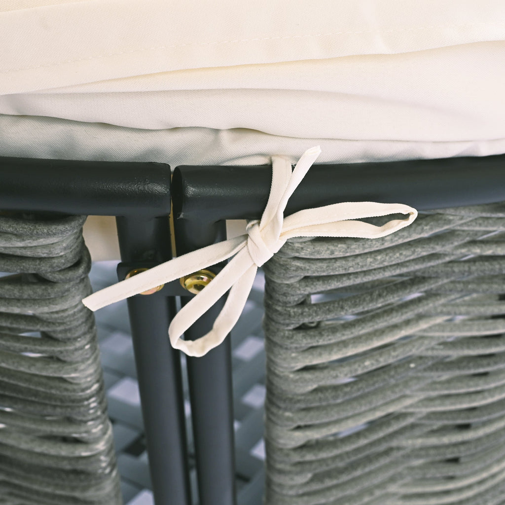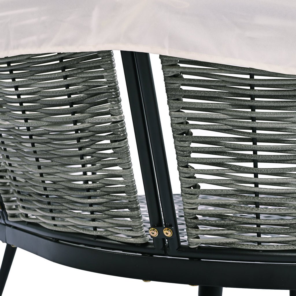 - [Sleek Metal Frame&Rattan Back] This sophisticated patio daybed combines a durable metal frame with intricately woven rattan, offering a blend of contemporary style and weather resistance. Its sleek structure ensures it fits seamlessly into any outdoor space, while the rattan back adds a natural touch that complements the surrounding environment.