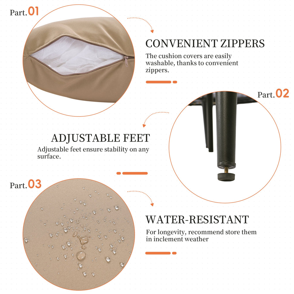 - [Comfortable Pillows&Cushions] Outfitted with four soft water-resistant cushions, each 4 inches thick, this daybed ensures maximum comfort. They are secured by magic tape and straps for stability. Accompanying these are two supportive back pillows, offering excellent back support. Their removable, zippered covers make washing and maintenance a breeze, ensuring long-lasting comfort.