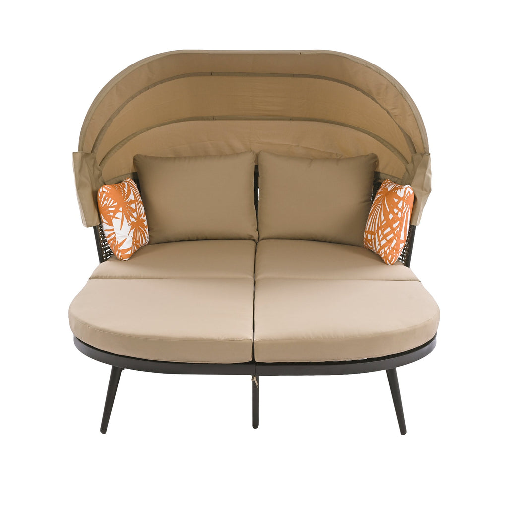 | Summary | Upgrade your outdoor lounging experience with our fashion patio daybed! Featuring a sturdy metal frame and a chic rattan back, this daybed comes with a retractable, gaslift-controlled canopy fixed by straps for customizable comfort. It includes four soft cushions with a 4-inch thickness, plus two back pillows and two colorful throw pillows for added flair. The cushion covers are easily washable, thanks to convenient zippers. Adjustable feet ensure stability on any surface, and a robust 700lbs weight capacity accommodates 2 people. Transform your patio into a relaxing retreat today! |