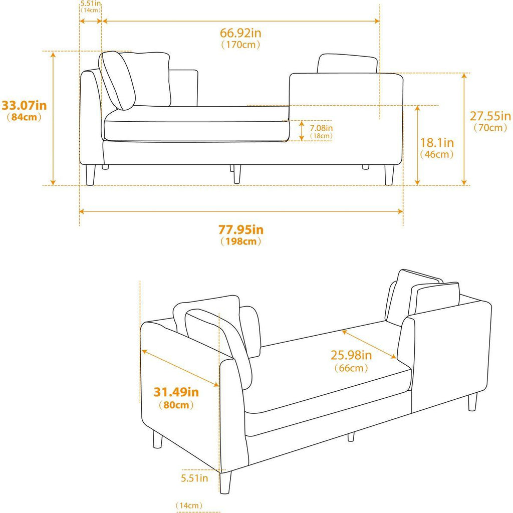 - Sturdy Construction: Built with a robust solid wood&plywood frame and pocket springs, our chaise longue supports up to 450 lbs, ensuring durability and stability.