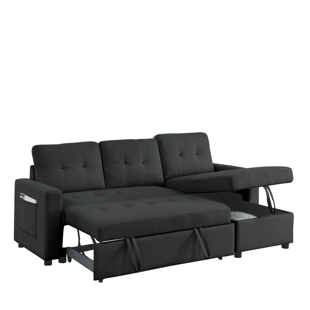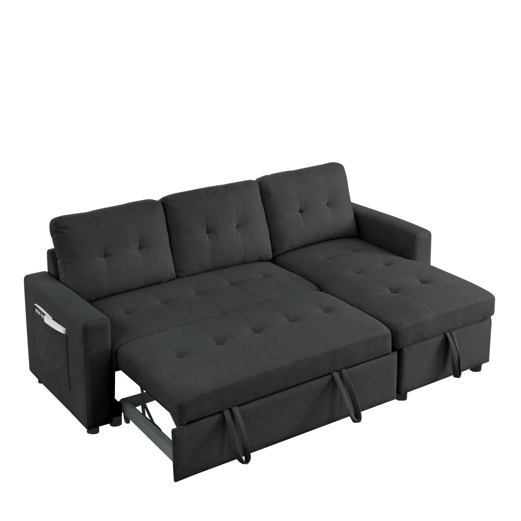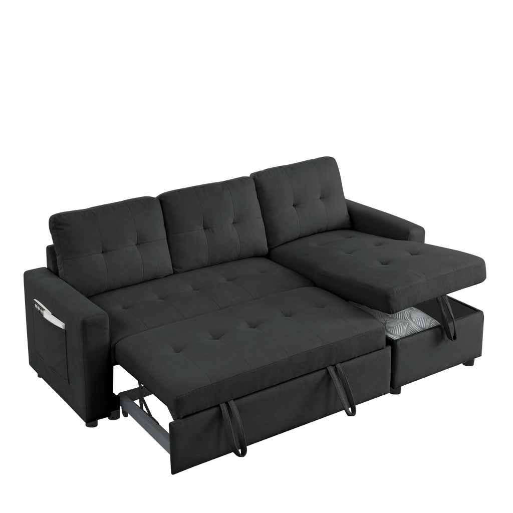 78.5" Sleeper Sofa Bed Reversible Sectional Couch with Storage Chaise and Side storage bag for Small Space Living Room Furniture Set