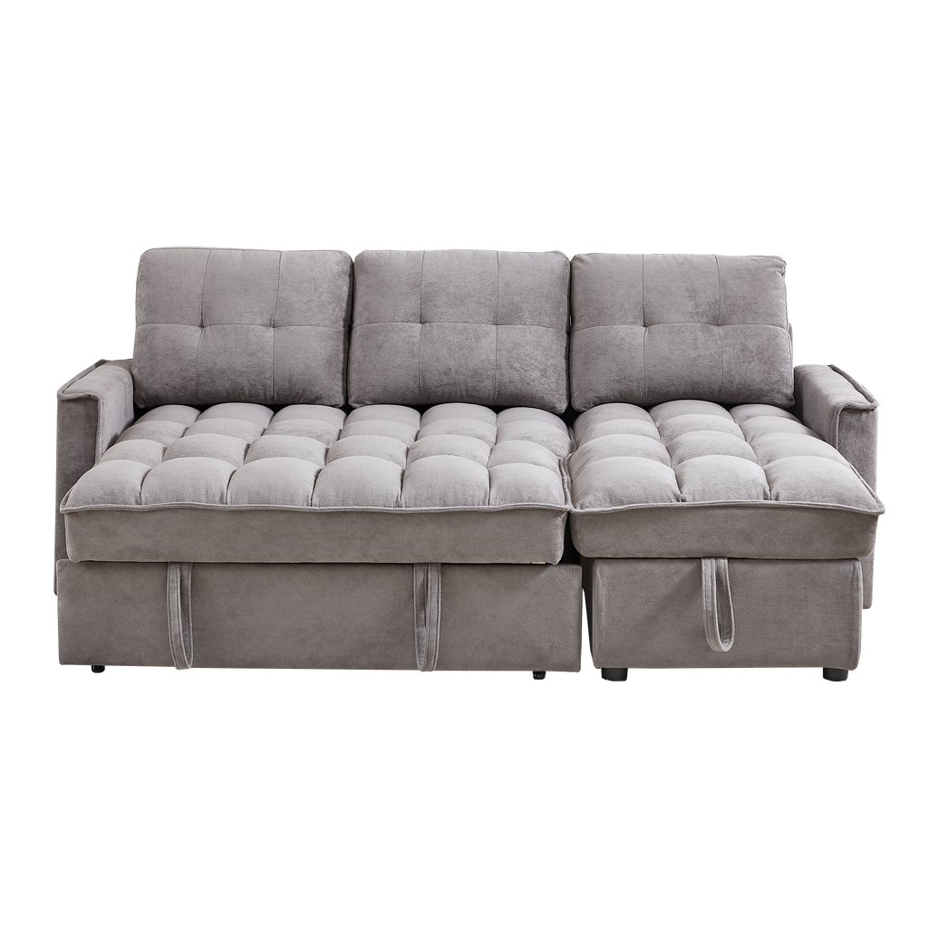 78.75" Reclining Sofa, Pull-Out Sofa Bed with USB and tape-c charging ports, L-Shaped Sectional Sofa with Reclining Storage and Arm Side Organizer Pocket Features, Living Room Comfort Sofa