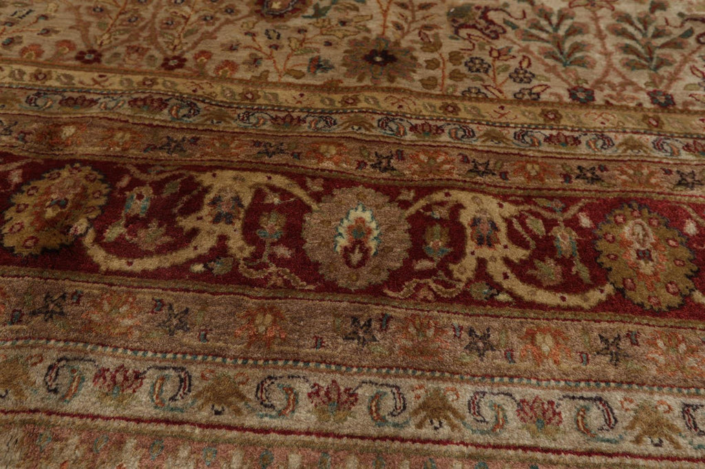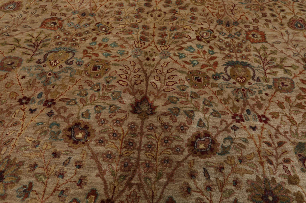 Cosmopolitan and sophisticated, the rug features bold arabesque floral and botanical motifs on the main field encompassed by a sumptuous main border enclosed within the vine and scroll minor borders. This rug representing an illustrious legacy of exquisite artistry and the intricate craftsmanship is primed to add visual glamor and class to its surroundings. Its soft texture and timeless design make it ideal to enhance any space where it is placed.