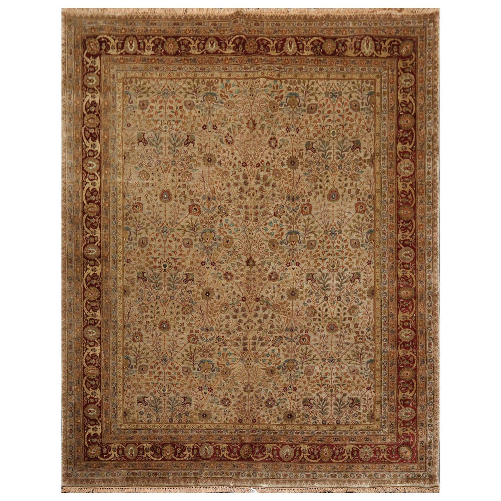 7'8" x 9'10" Hand Knotted Wool 250 KPSI Agra Muted Earth Tones Area Rug Beige