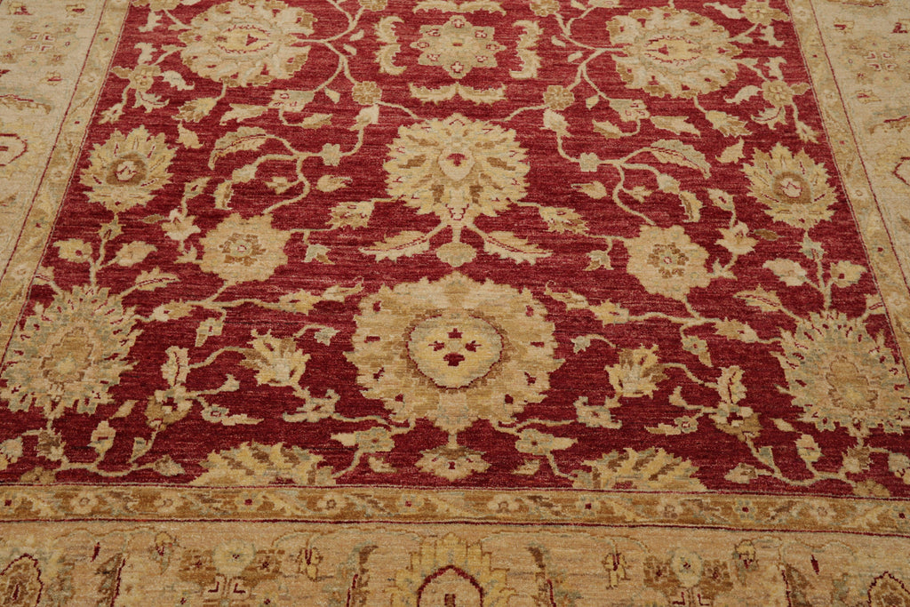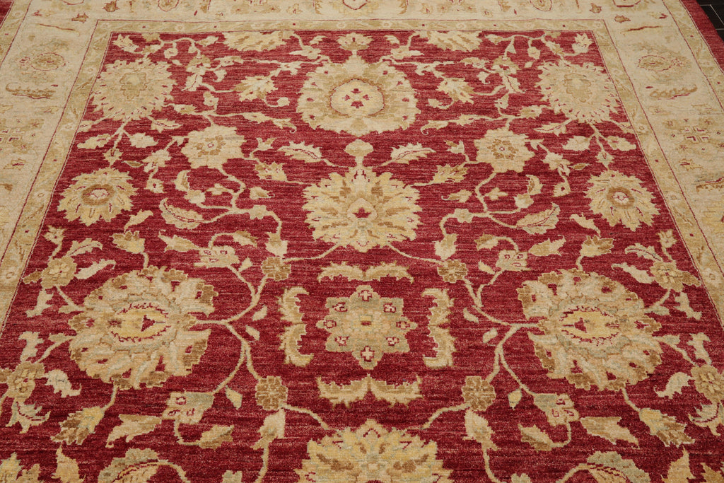 7'8" x 9'11" Hand Knotted Border Stone Wash Peshawar Vegetable Dye Area Rug Rusty Red