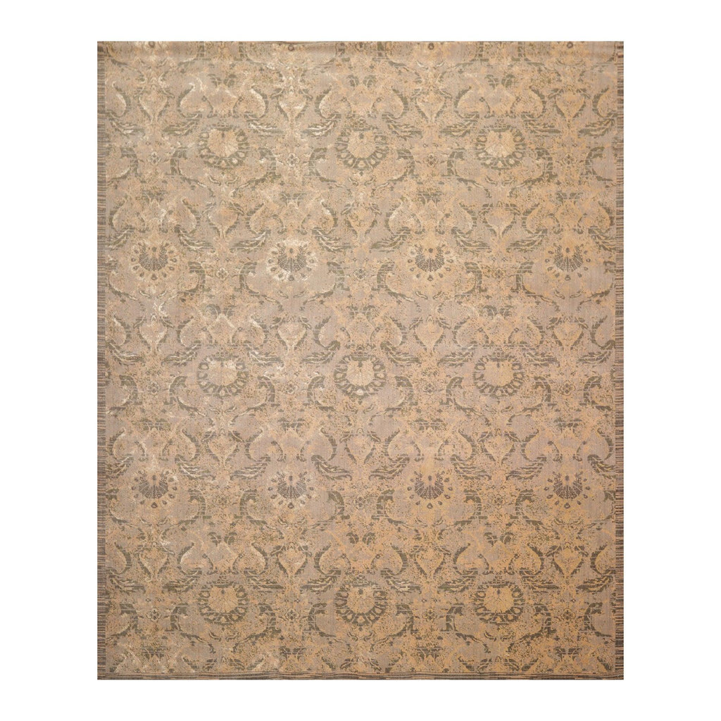 This is a beautiful Gray, Beige, Tan Color Machine Made, Oriental Wool and Bamboo Rug.