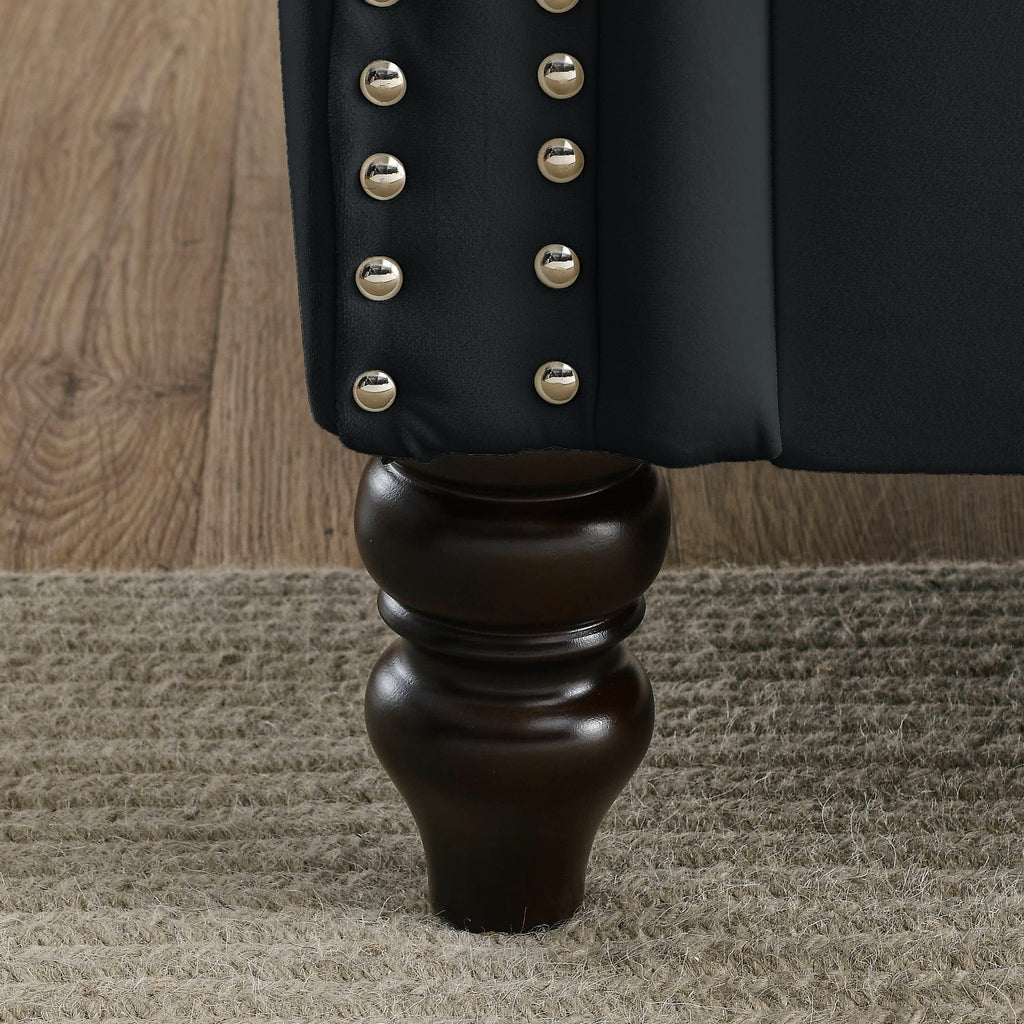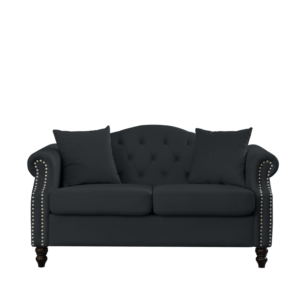 - Sturdy and durable. The frame of the sofa is made of solid wood for added sturdiness and durability. With comfortable foam, soft cushions supported by a curved spring structure and tufted buttons on the back and arms, this sofa is perfect for those who want to rest after a busy day.