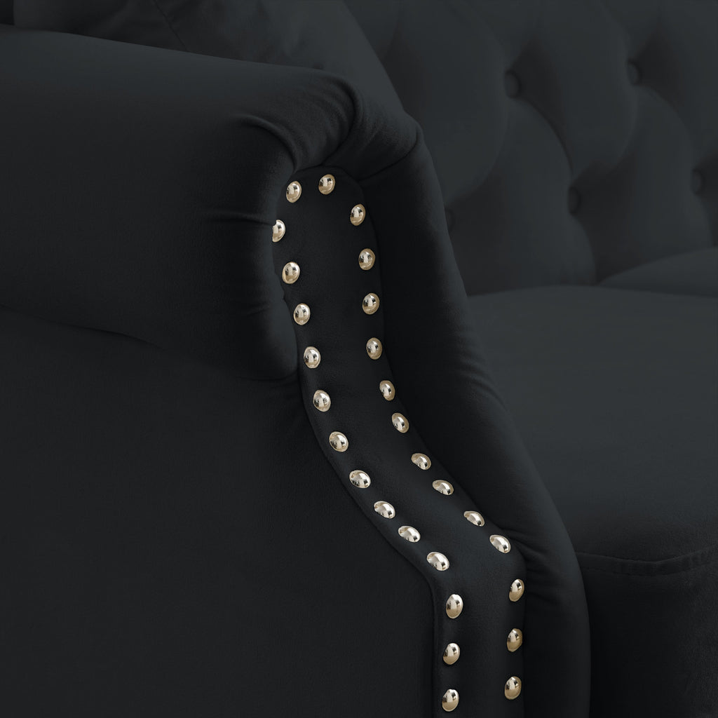 - Sturdy and durable. The frame of the sofa is made of solid wood for added sturdiness and durability. With comfortable foam, soft cushions supported by a curved spring structure and tufted buttons on the back and arms, this sofa is perfect for those who want to rest after a busy day.