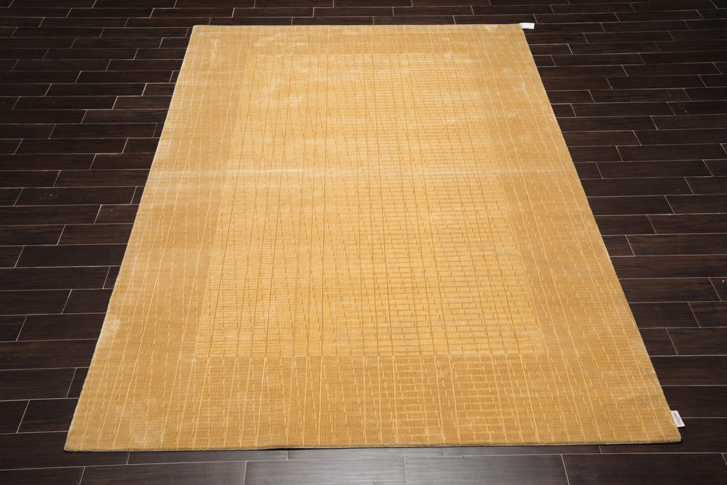 This is a beautiful Tan, Beige, Color Machine Made, Oriental Wool and Bamboo Silk Rug.