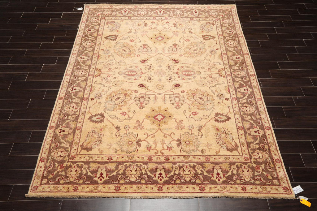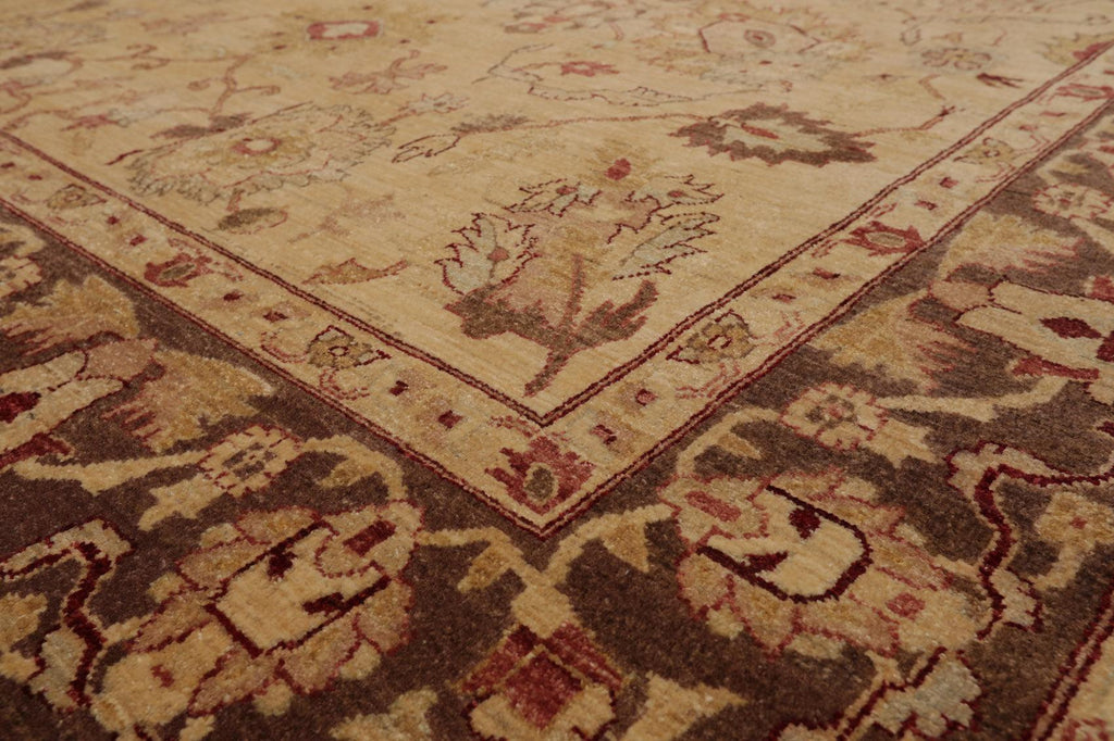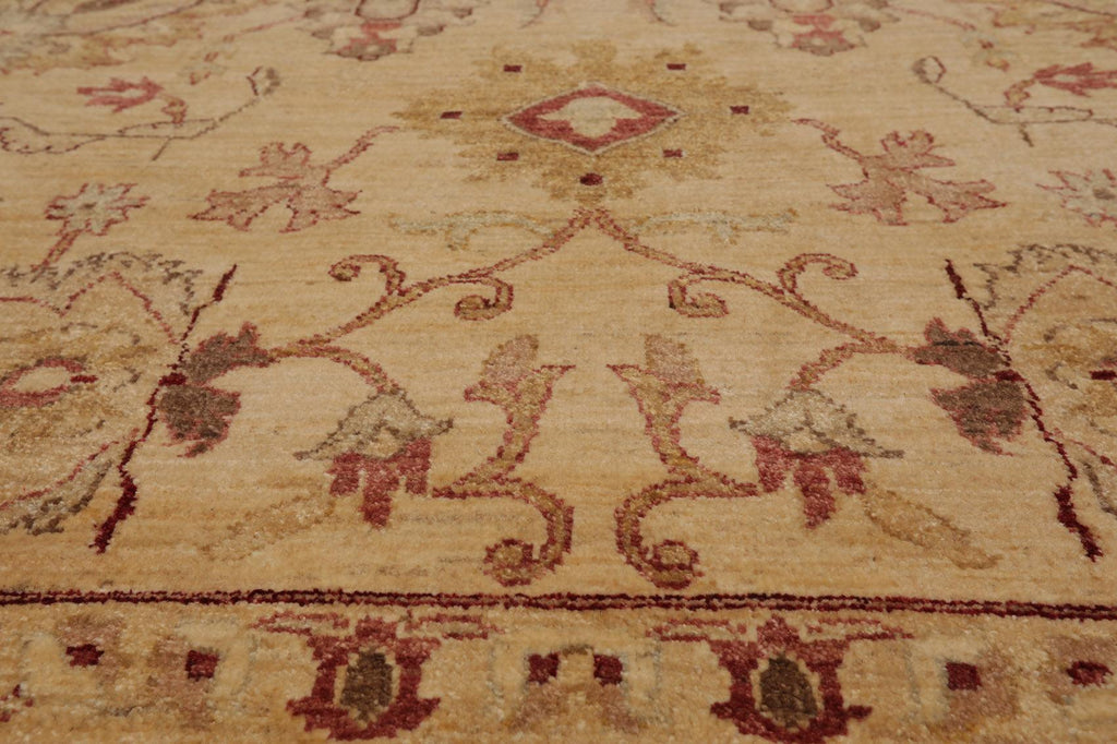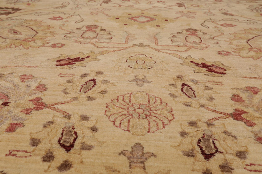 Story Behind the Art: Hand-knotted rugs are Pakistan's second-largest cottage and small industry that began as early as the 11th century under the Mughal rule. The craftsmen have the capacity to produce any type of rug using all the popular motifs of guls, medallions, paisleys (botehs), traceries, and geometric designs in various combinations. While the "stone washes" are used to fade and soften colors, the Peshawar style is characterized by a thinly sheered pile, large print designs, and most predominantly, their antique ivory and sometimes golden tones.