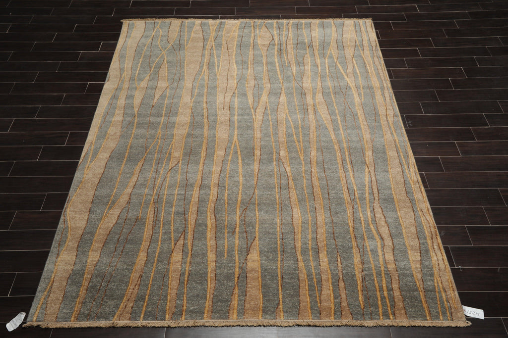 7'9"x9'9" Hand Knotted Wool Stone Wash Peshawar Vegetable Dye Area Rug Gray Blue