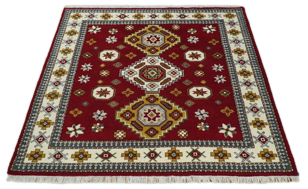 - Hand-Knotted 6 feet 8 inches by 6 feet 8 Inches wool Rug