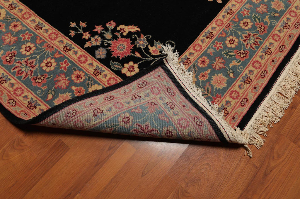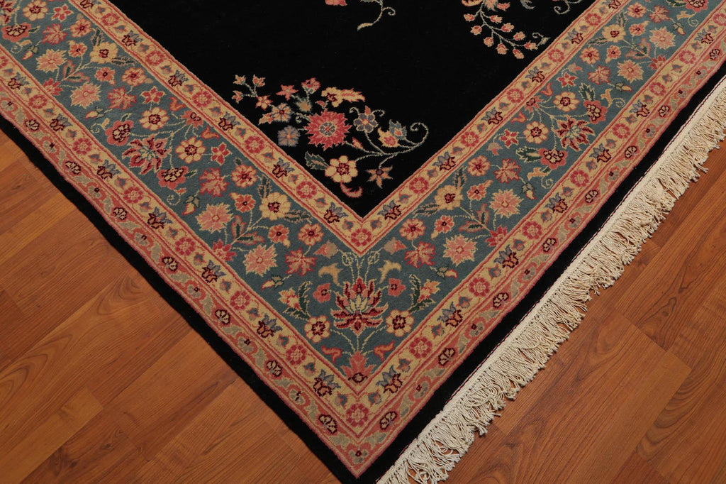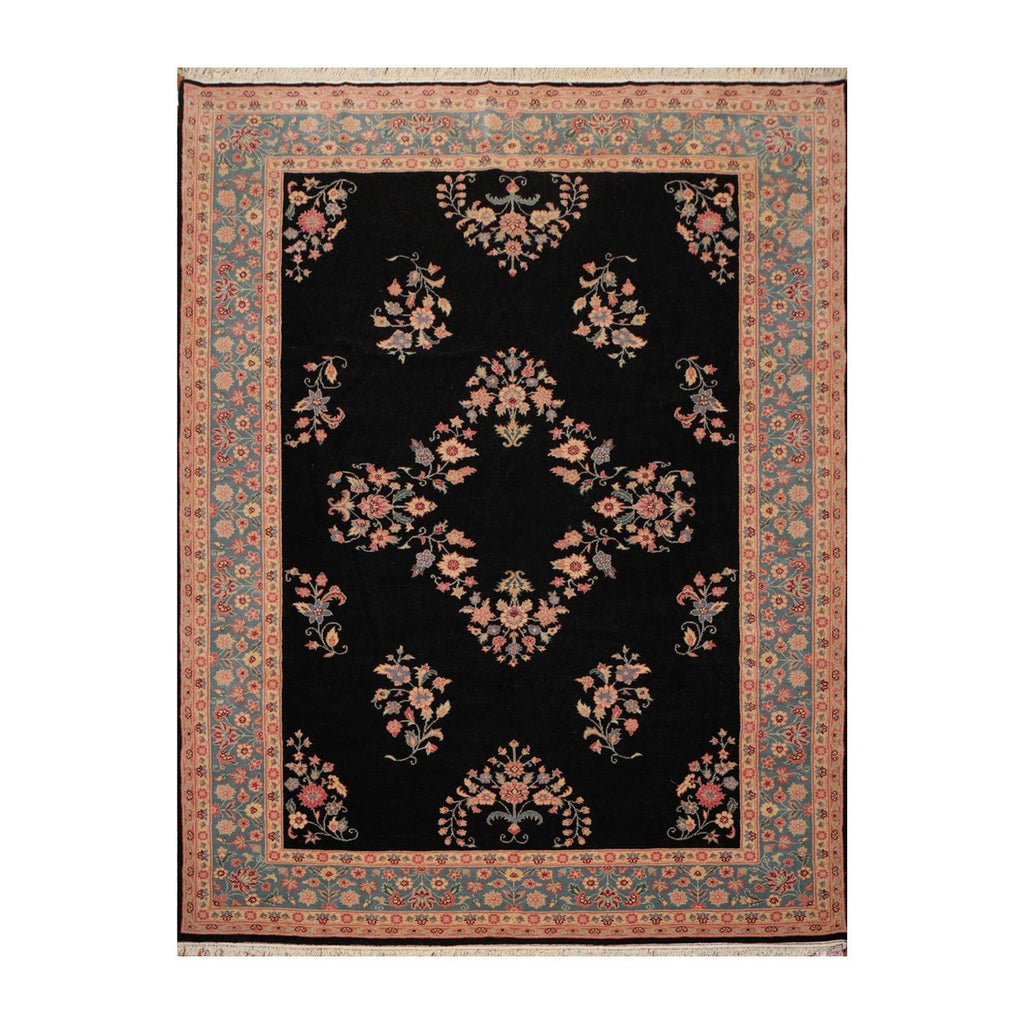 This is a beautiful Black Aqua Beige, Tan, Pale Pink, Blue, Burgundy, Multi Color Hand-Knotted Oriental Area Rug 100% Wool Rug. Its elegant style is easy to decorate with and perfect for living room, dining room, bed room or anywhere in the residence or