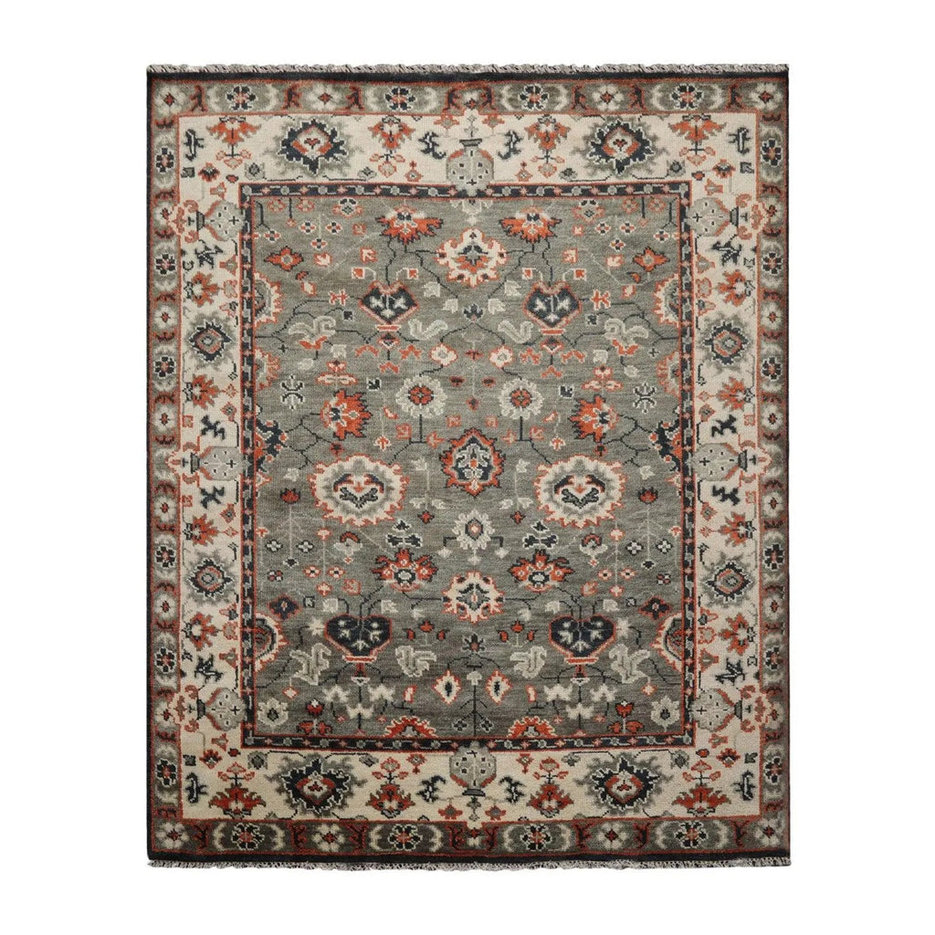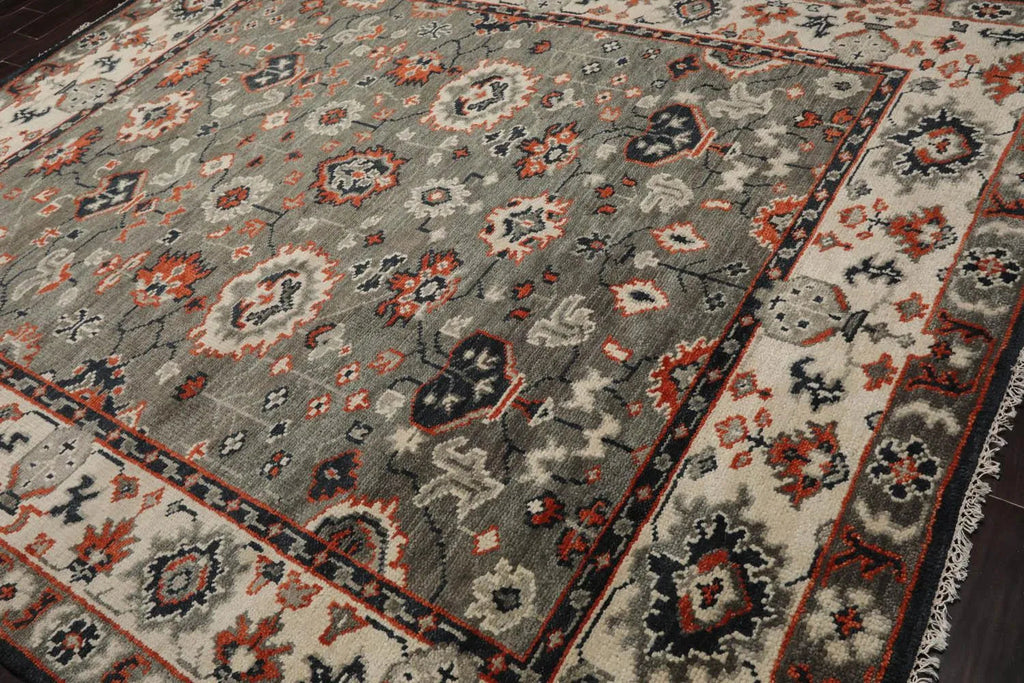 This is a beautiful Gray,Beige,Burnt Orange Color design Hand Knotted,Turkish Oushak Oriental 100% Wool Rug.