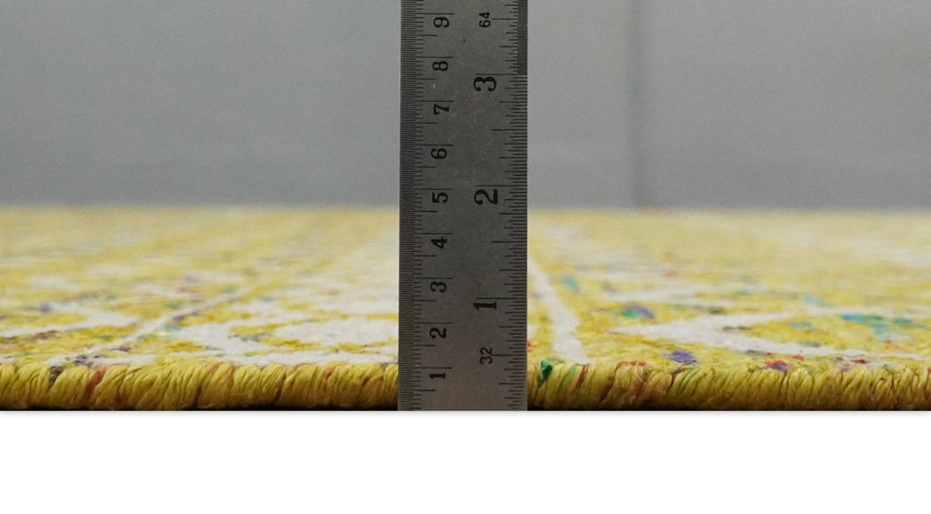 This Hand-Knotted Rug has been Made with Handspun Recycled Silk. The beautiful colors of the rug and the modern design of the rug complete your space without making it look busy. Hand-Knotted rugs are durable and can last for decades if treated right.