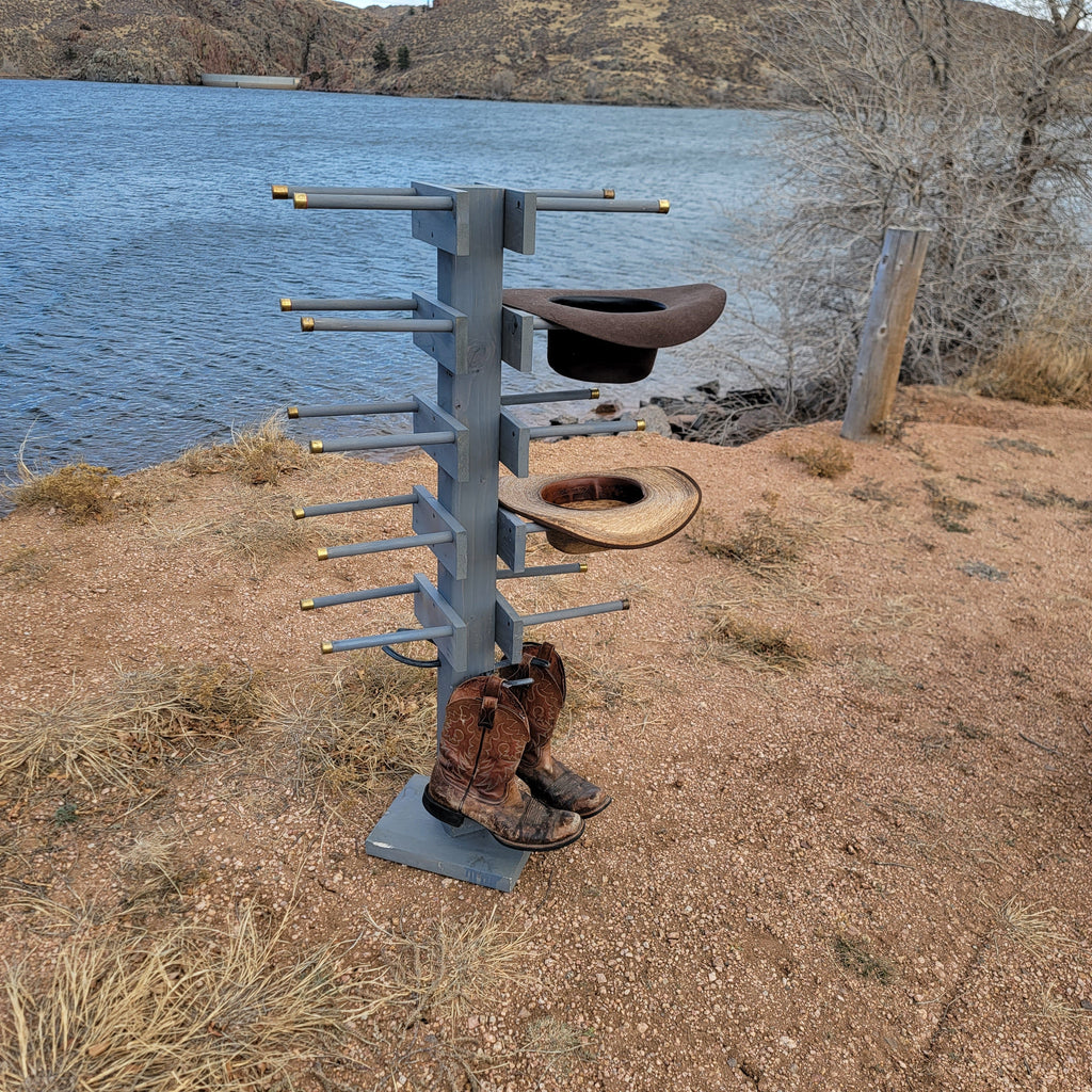 8 Cowboy Hat & 2 Boot Tree Rack | Hybrid Western Organizer | Rustic Wooden Hat & Boot Stand | Functional Entryway Display | Handcrafted in USA
