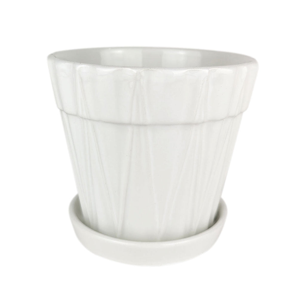 This white decorative pot is a wonderful choice for any type of houseplant. It comes with a saucer and a drainage hole, making watering your plant easier and less messy. Simple and elegant with a sleek design, this stylish pot can accent various decor styles in both indoor living spaces and outdoor patios.