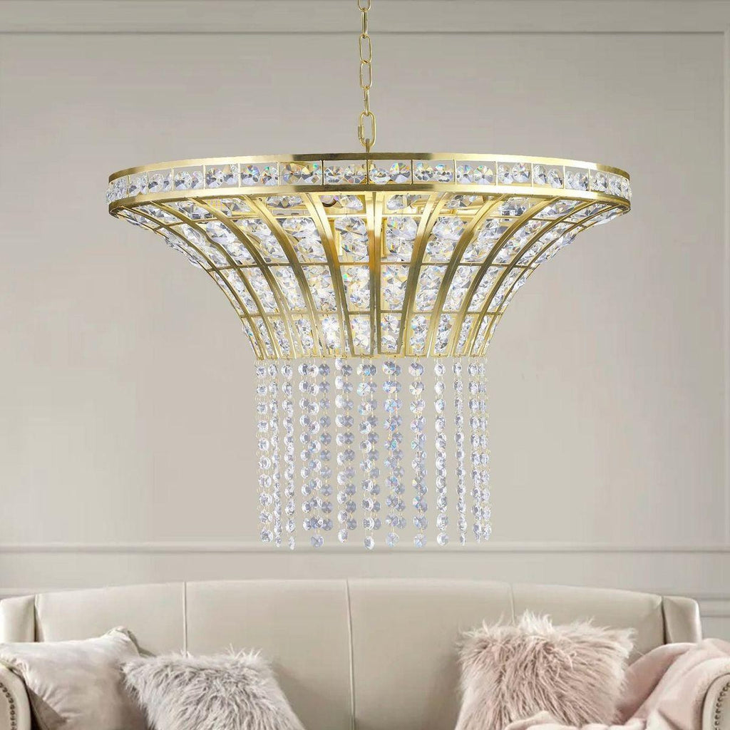 - Great light transmission - The sand gold iron lamp body crystal chandelier has the best light transmission, light can be refracted to the ceiling, making the lighting full of beauty.