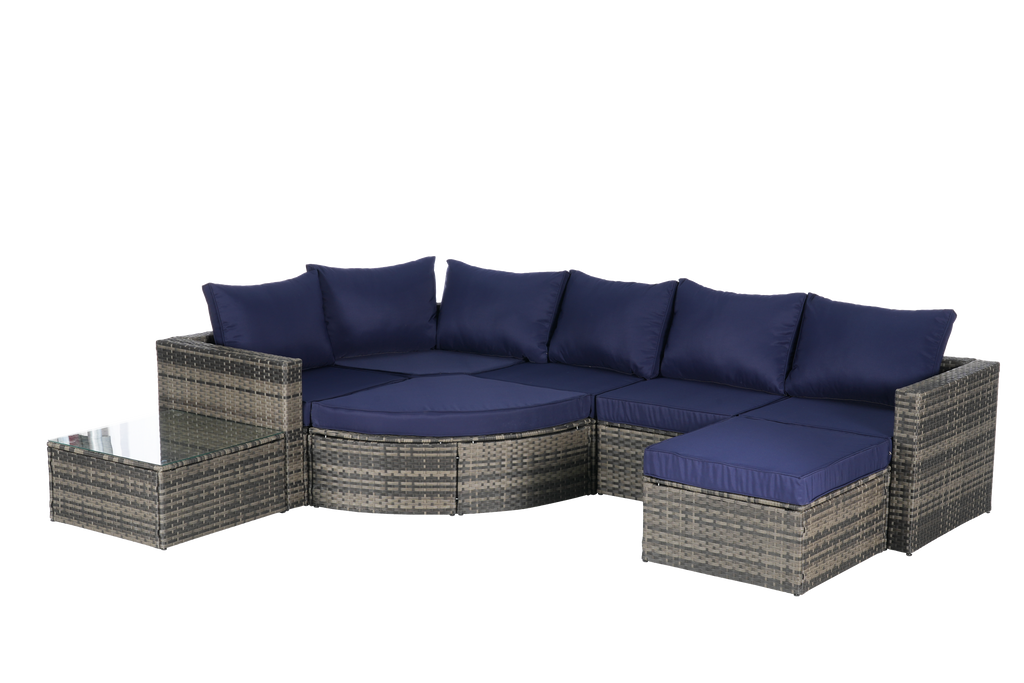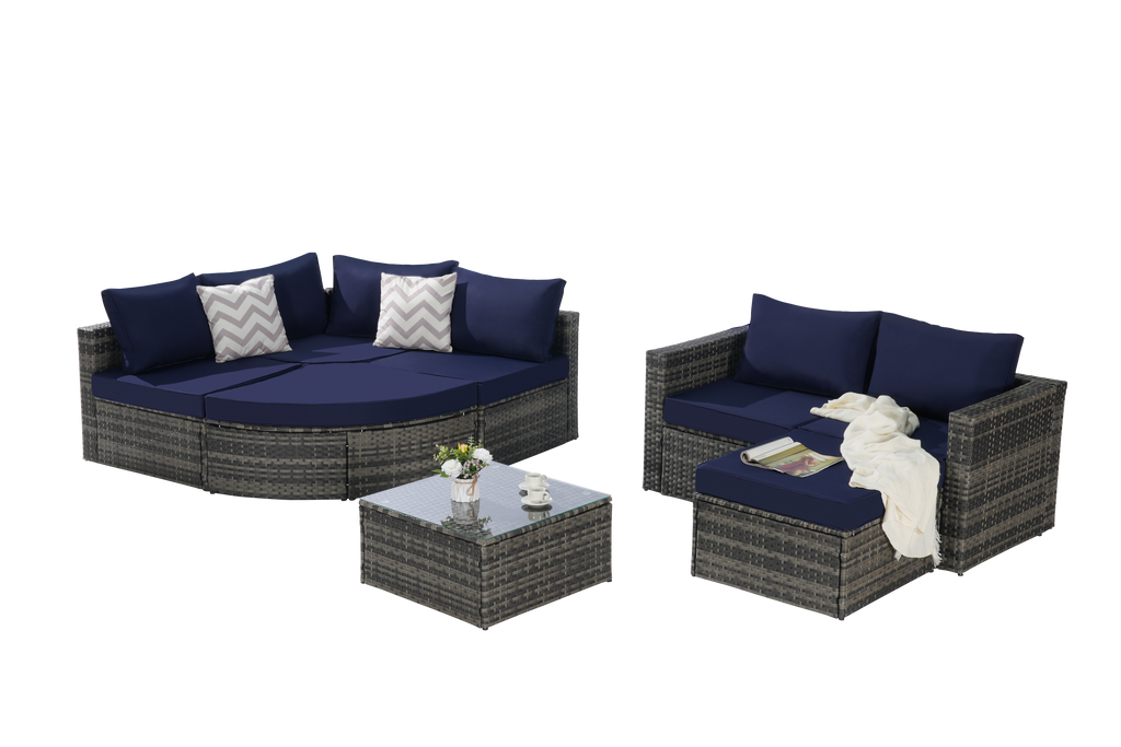 Color:Gray Rattan + Dark Blue Cushion