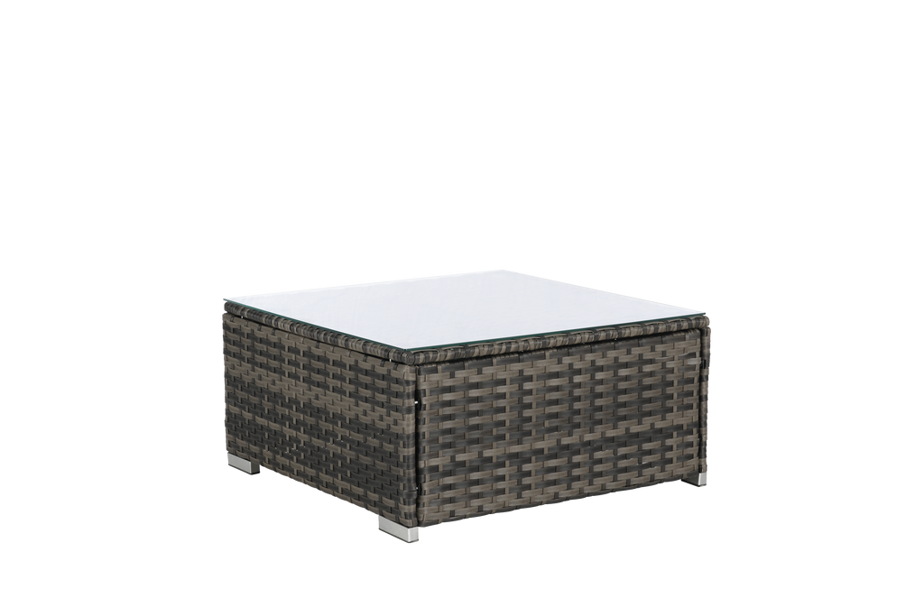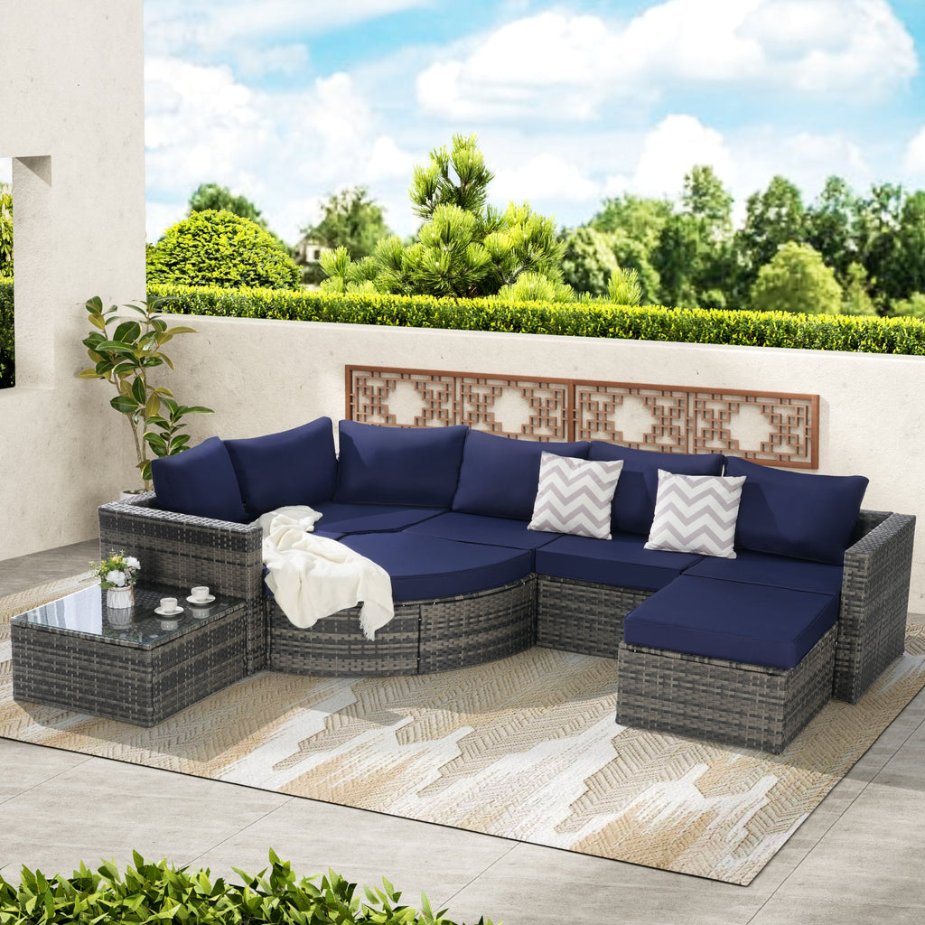 8 Piece Outdoor Wicker Sectional Sofa Set with 1 Curved Sofa & Glass Top Table Description