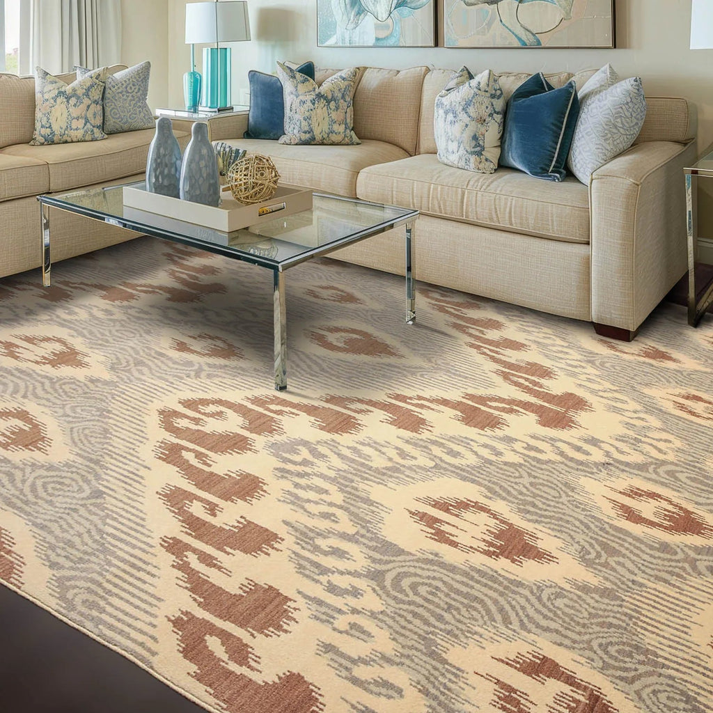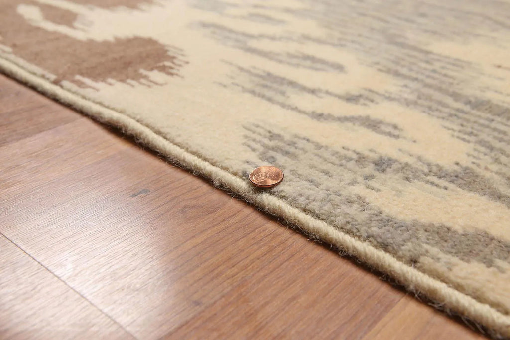 8' x 10' Hand Knotted 100% Wool Ikat Bold Design Oriental Area Rug Beige