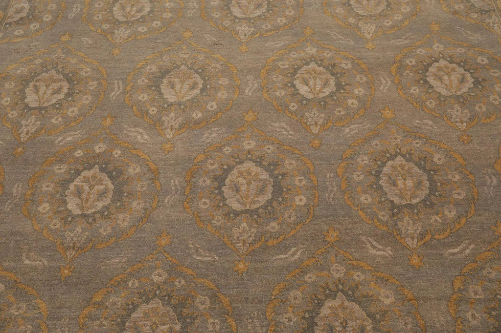 Story Behind the Art: Hand-knotted rugs are Pakistan's second-largest cottage and small industry that began as early as the 11th century under the Mughal rule. The craftsmen have the capacity to produce any type of rug using all the popular motifs of guls, medallions, paisleys (botehs), traceries, and geometric designs in various combinations. While the "stone washes" are used to fade and soften colors, the Peshawar style is characterized by a thinly sheered pile, large print designs, and most predominantly, their antique ivory and sometimes golden tones.