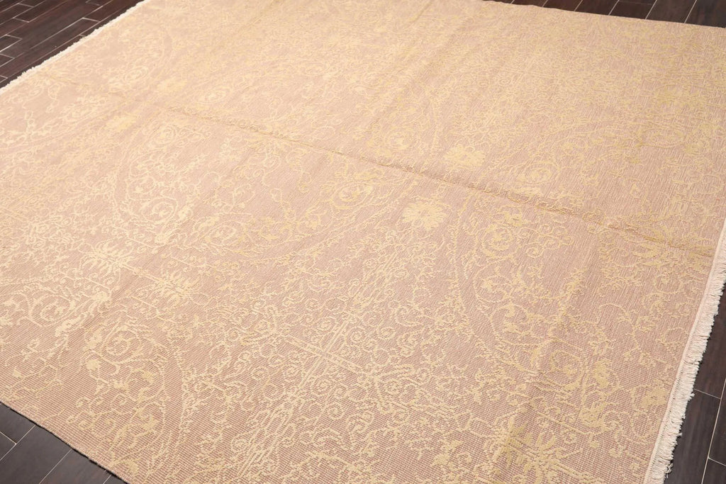 This is a beautiful Light Brown, Light Gold Color Designer Flat & Cut Pile Hand Knotted Tibetan Oriental Wool Rug. Its elegant style is easy to decorate with and perfect for living room, dining room, bed room or anywhere in the residence or office.