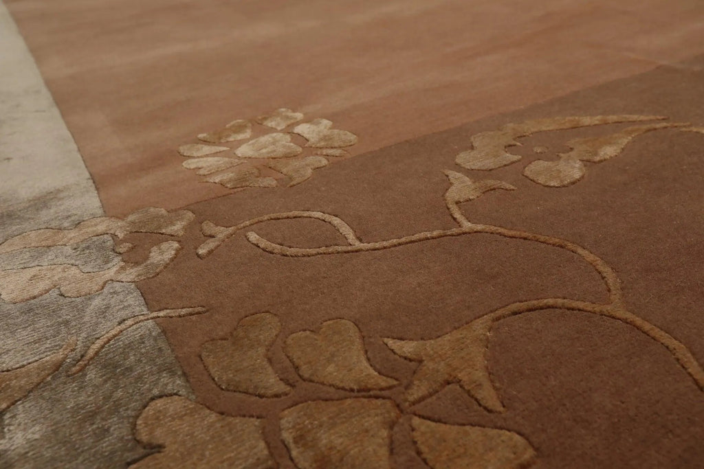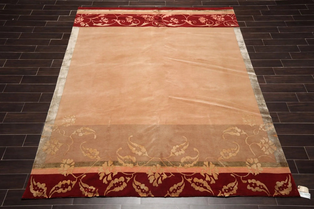 8' x 10' Hand Knotted Superfine Wool & Silk Tibetan Oriental Area Rug Tan