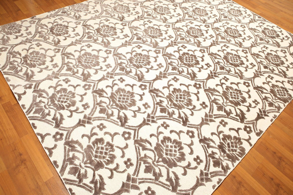 This is a beautiful 8'x10' Ivory, Brown Color Hand Knotted Art Silk and Wool Oriental Design Rug. Its elegant style is easy to decorate with and perfect for living room, dining room, bed room or anywhere in the residence or office.