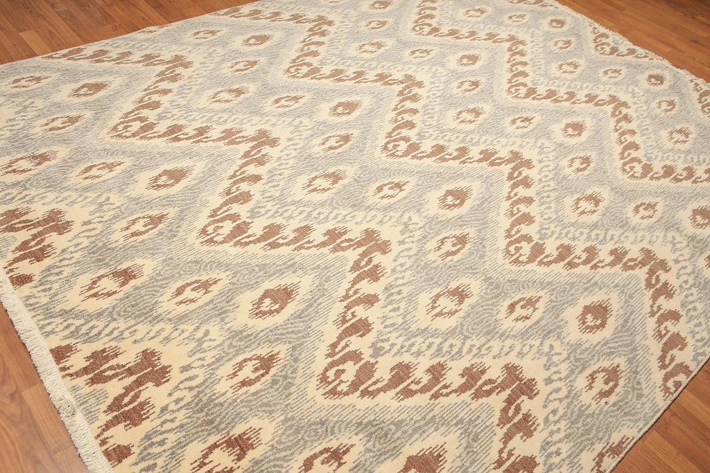 8' x 10' Modern Hand Knotted Ikat Wool Full Pile Oriental Area Rug Ivory