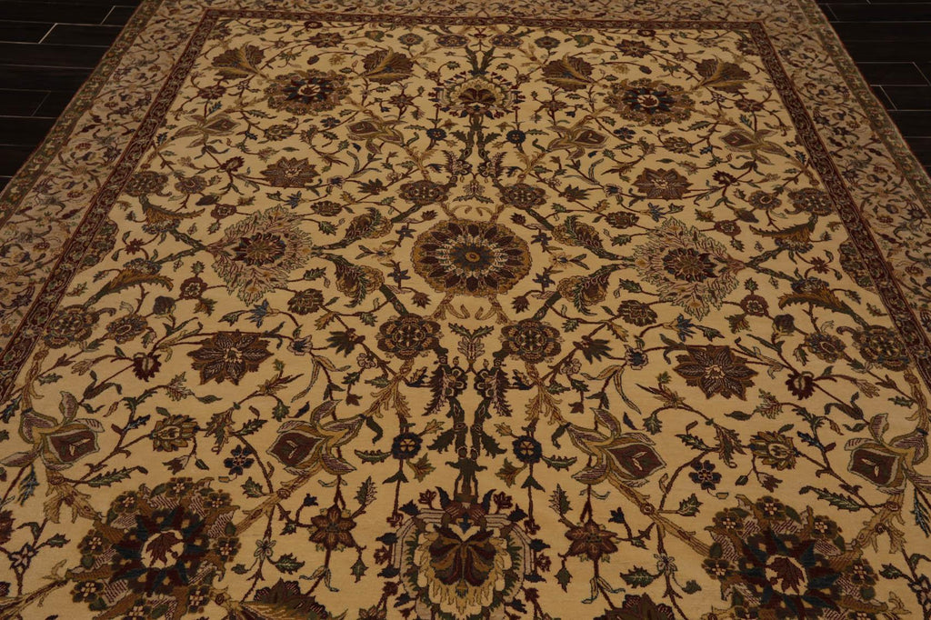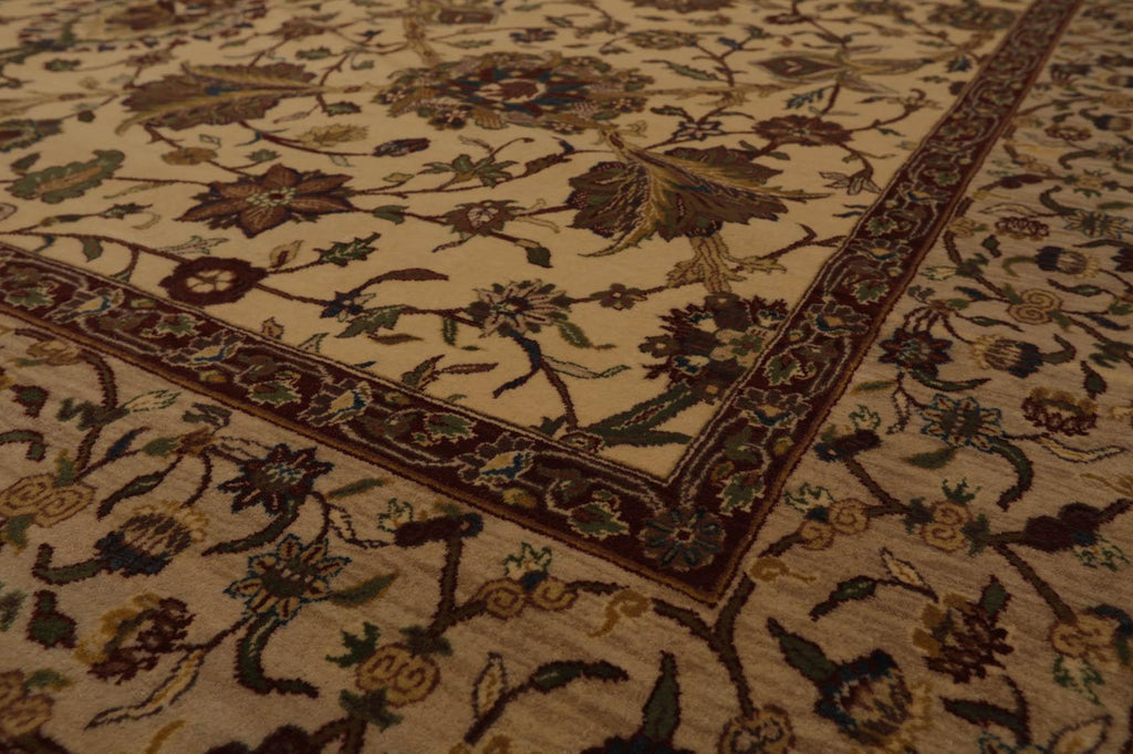 Cosmopolitan and sophisticated, the rug features bold arabesque floral and botanical motifs on the main field encompassed by a sumptuous main border enclosed within the vine and scroll minor borders. This rug representing an illustrious legacy of exquisite artistry and the intricate craftsmanship is primed to add visual glamor and class to its surroundings. Its soft texture and timeless design make it ideal to enhance any space where it is placed.