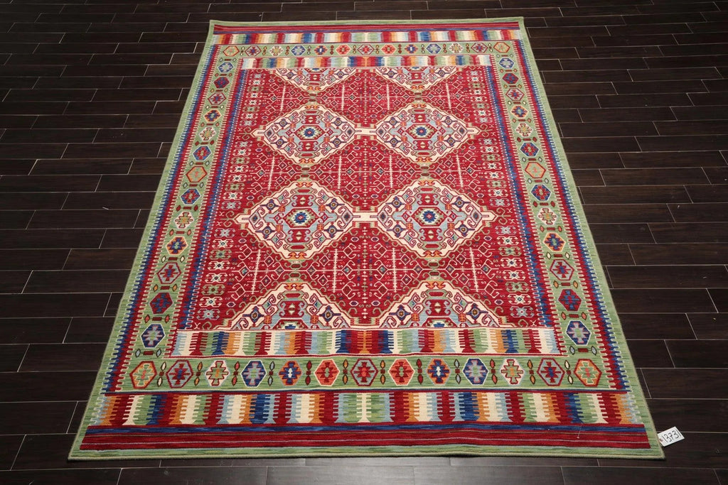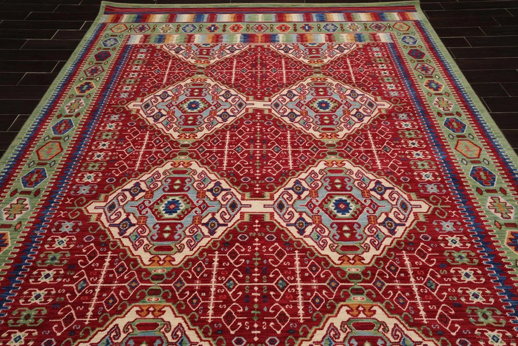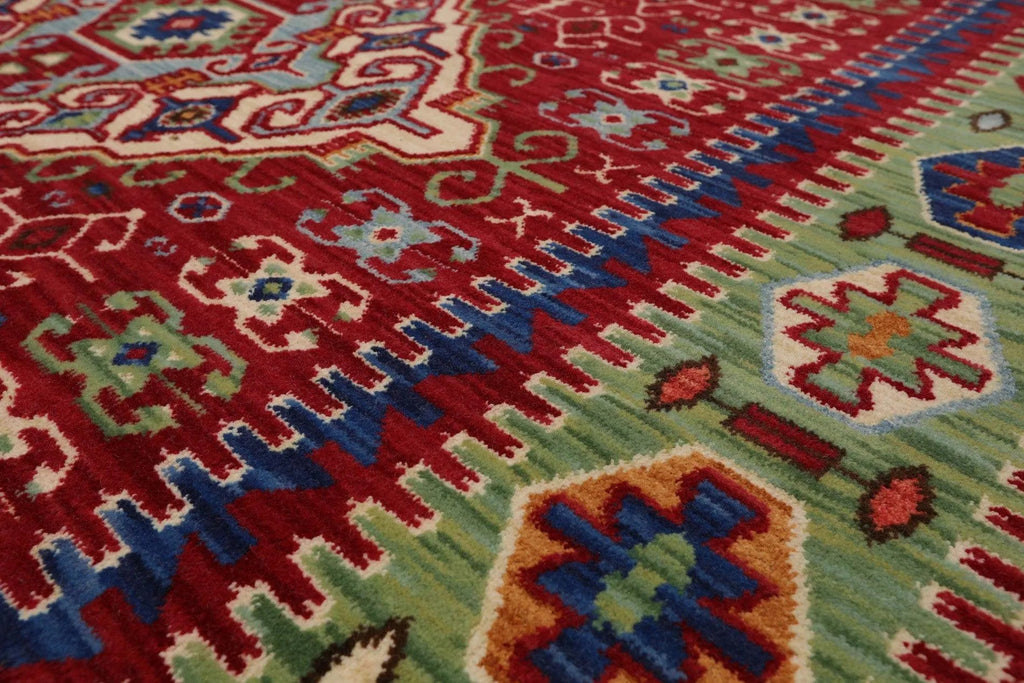 This is a beautiful 100% Wool machine made Featuring traditional Heriz style geometric Oriental motifs and a captivating color palette, the rug provides effortless visual glamor and aura of class to its surroundings. Its soft texture and timeless design make it ideal to enhance any space where it is placed