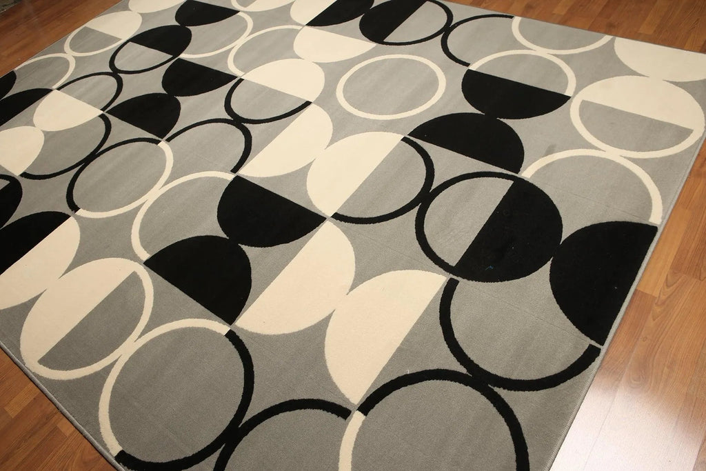 This is a beautiful 8'x11' Gray, Ivory, Black Color Machine Made Polypropylene Indonesian Modern Oriental Rug. Its elegant style is easy to decorate with and perfect for living room, dining room, bed room or anywhere in the residence and office.