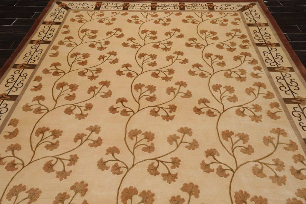 Story Behind the Art For centuries Tibetans have used rugs for decorative and functional purposes, drawing upon geometric patterns, auspicious symbols, real and mythical animals, and natural imagery to create beautiful, colorful designs. But it was only after 1959 with the Chinese invasion of Tibet and the growth of Tibetan diaspora in Nepal and Tibet that Tibetan rug weaving underwent a crucial commercial revival. In the 1970s, Tibetan rugs rose to prominence and Nepalese artisans, drafted in to keep up with the rising demand, became the mainstay of the Tibetan rug weaving traditions. While either Turkish knot or the Persian knot (Senneh knot) is used to create the pile or depth of a rug in most of Asia, the Tibetan rug utilizes a slit-loop technique called the Tibetan knot. Here rugs are woven by wrapping a continues length of yarn over a rod laid across the warps stretched on the loom. When the rod has been wrapped for its entire length, a knife is slid along the rod, cutting the wrapped yarn into two rows of pile tufts. The resultant pile is a wonderful mix of depth, texture and richness. Traditional Tibetan rug motifs generally reflect the importance of Buddhist religion in Tibetan art and culture. Many design elements of Chinese origin like the phoenix, dragon, and lotus symbols alongside motifs from Chinese decorative tradition have also been assimilated in the rug repertoire of this region. In modern times, designs featured in Tibetan, Nepalese rugs (those woven by Tibetan refugees in Nepal) and Indo-Tibetans (woven in India) range from Westernized adaptations of traditional Tibetan motifs (such as branching floral designs and snow lions) to a large mixture of foreign and modern free-form patterns.
