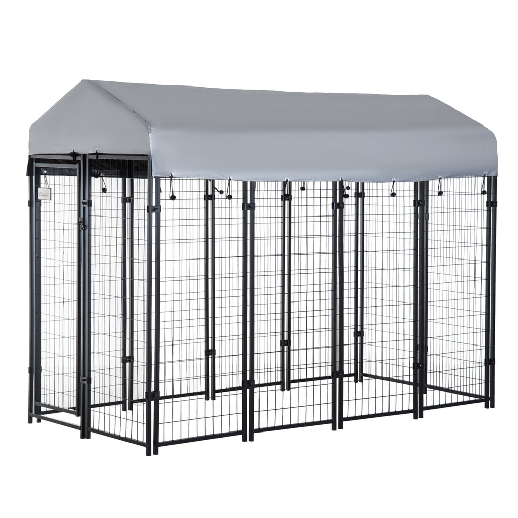 - Steel Frame: The metal railings on this outdoor dog cage are strong and sprayed for a better-quality surface. There are no sharp edges that could hurt your pets.