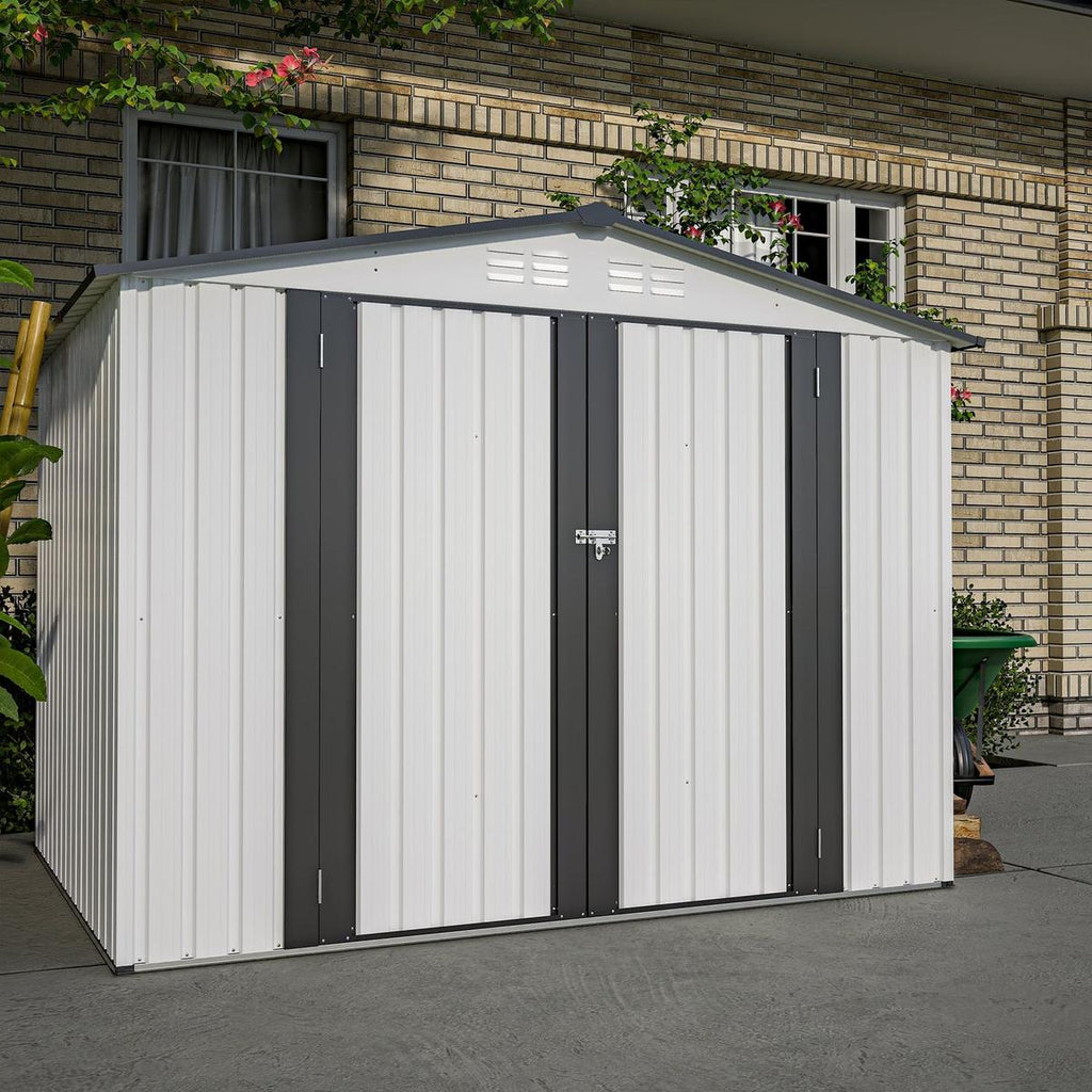 - 【Multi-Purpose Storage Shed】This versatile 8 x 6 feet shed provides ample storage space, perfect for housing items like bikes, lawnmowers, ladders, and tools. It can also serve as a comfortable pet room or a convenient garbage chamber.