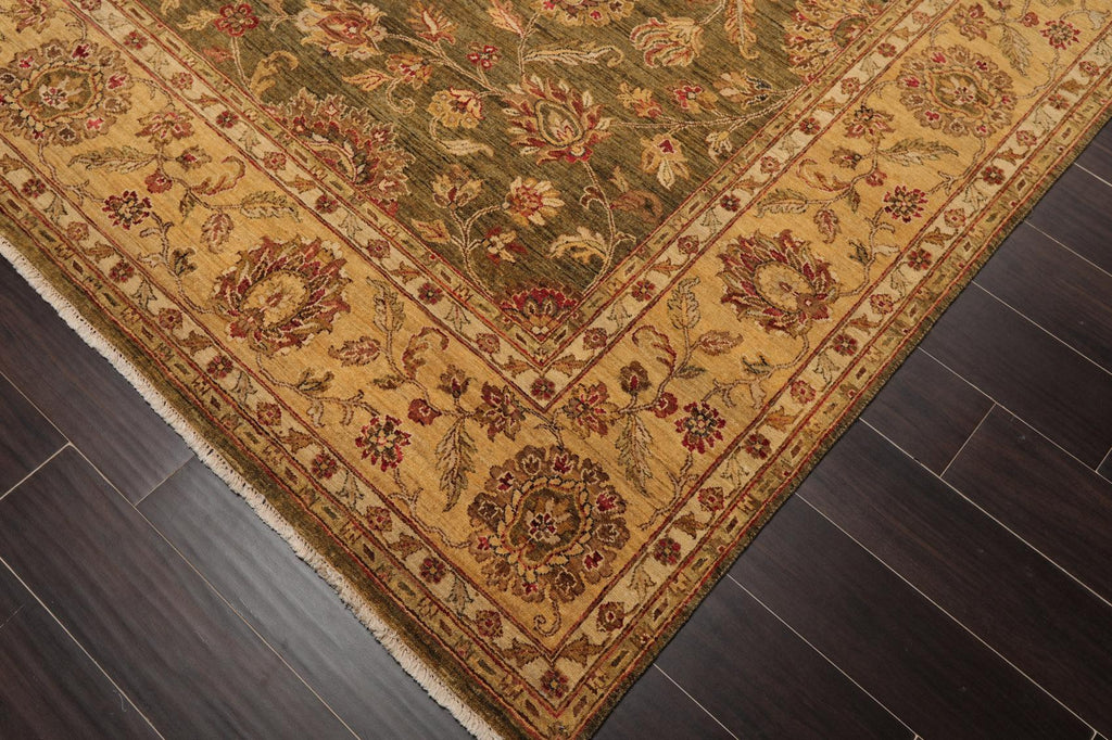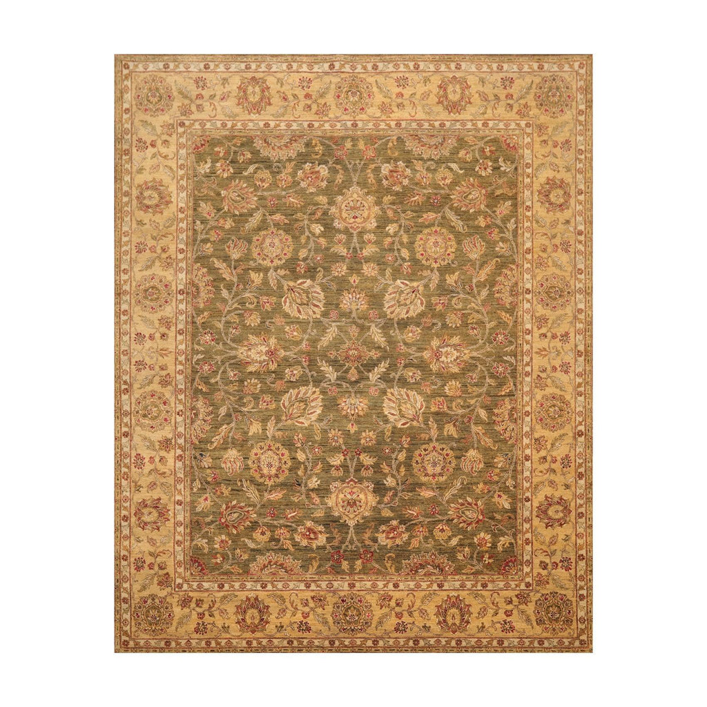 Story Behind the Art: Hand-knotted rugs are Pakistan's second-largest cottage and small industry that began as early as the 11th century under the Mughal rule. The craftsmen have the capacity to produce any type of rug using all the popular motifs of guls, medallions, paisleys (botehs), traceries, and geometric designs in various combinations. While the "stone washes" are used to fade and soften colors, the Peshawar style is characterized by a thinly sheered pile, large print designs, and most predominantly, their antique ivory and sometimes golden tones.