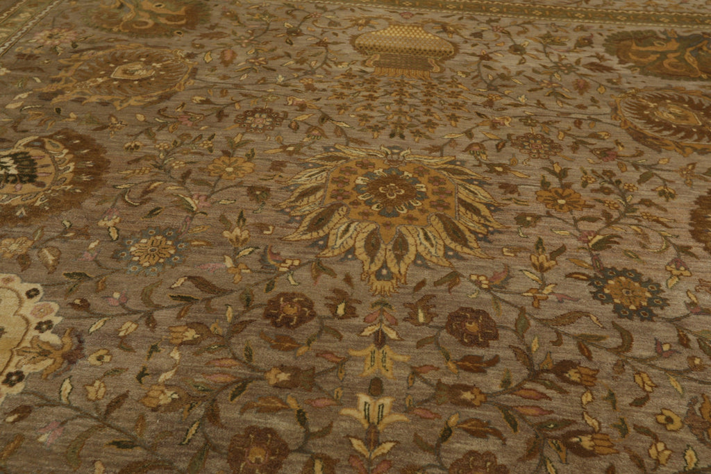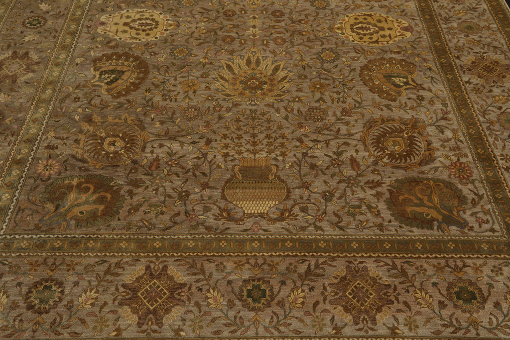 This is a beautiful Taupe, Sage, Beige Color Agra design Hand Knotted, Persian Oriental 100% Wool Rug. Its soft texture and timeless design make it ideal to enhance any space where it is placed.