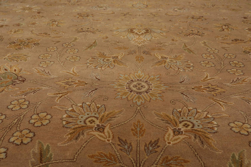Cosmopolitan and sophisticated in look, the rug has been hand crafted by artisans to a flawless composition. The main field comprising highly stylized floral and botanical elements is encompassed by a handsome multi-band border. The design of the border compliments the inner field and adds gentle grandeur to the artful composition of the rug. This rug representing an illustrious legacy of exquisite artistry and intricate craftsmanship is primed to add visual glamor and class to its surroundings. Its soft texture and timeless design make it ideal to enhance any space where it is placed.