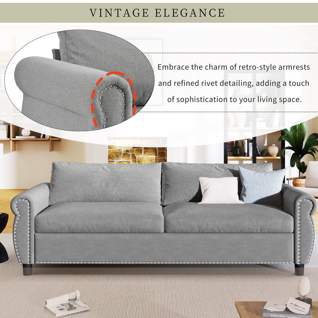 • Elegant Retro Design: Embrace a touch of vintage charm with our sofa bed's stylish design. The intricately crafted armrests with rivet detailing add a timeless and sophisticated flair, creating a seamless blend of modern functionality and classic elegance.
