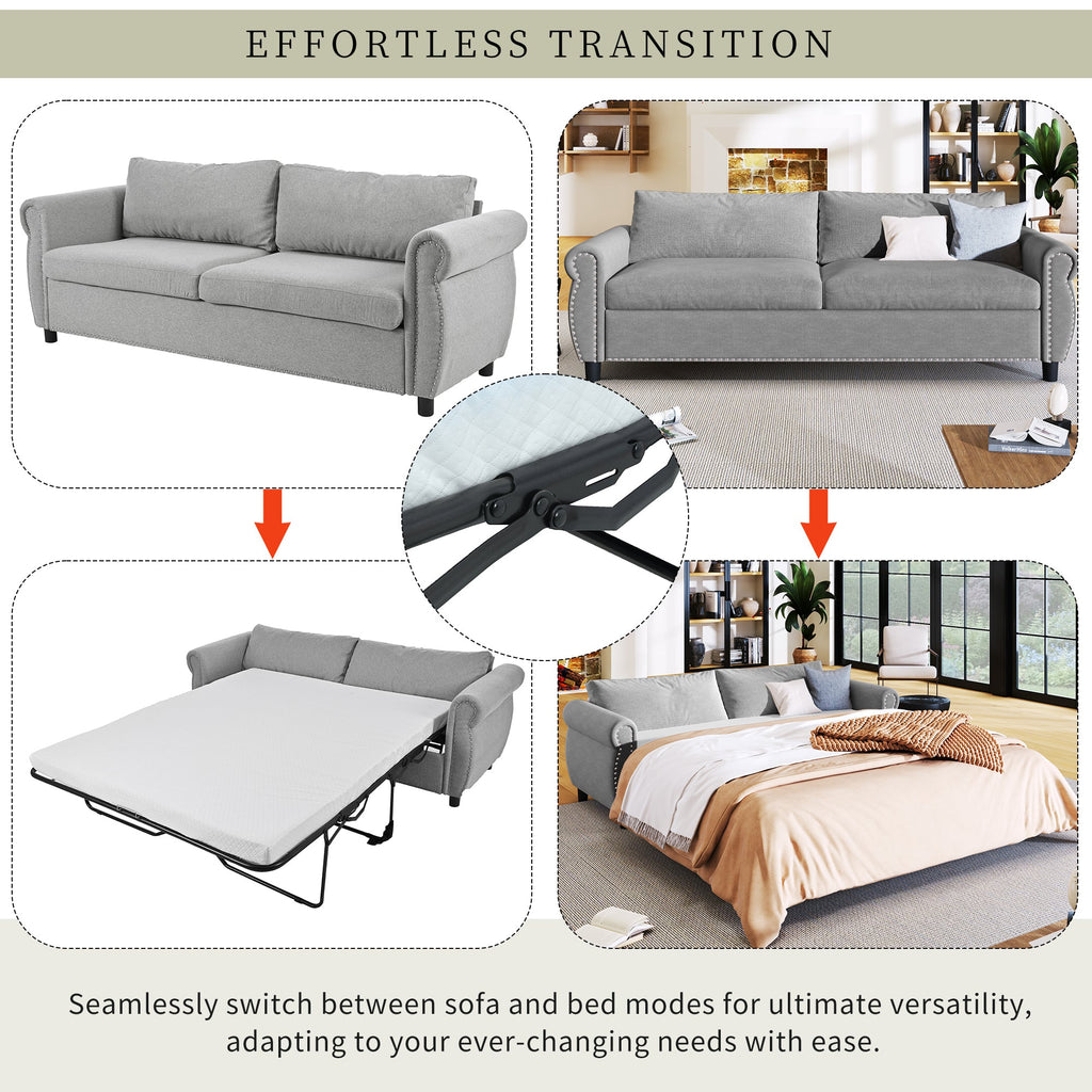 80.7" 2-in-1 Sofa Bed Sleeper with Large Memory Mattress(63"x70.9x3.3 inch), for Living Room Spaces Bedroom