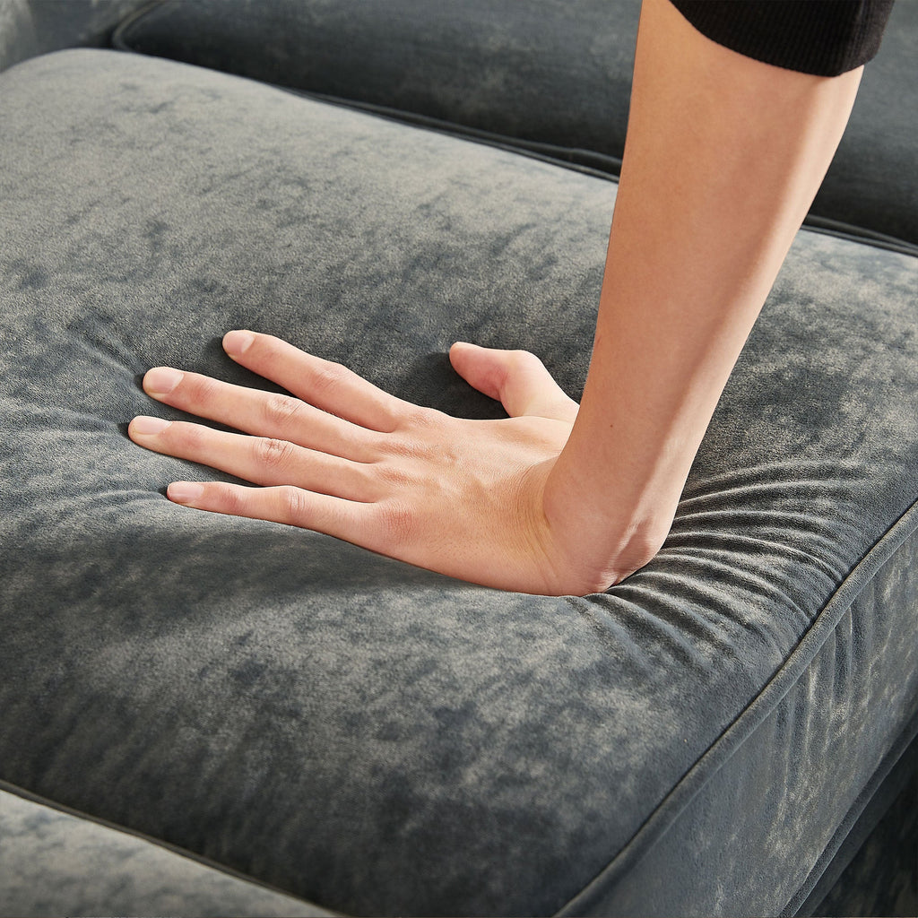4. COMFORTABLE DESIGN: This sofa showcases tufting in a high-grain soft velvet fabric, while the high-carbon serpentine springs and high-density foam provide comfort and support.