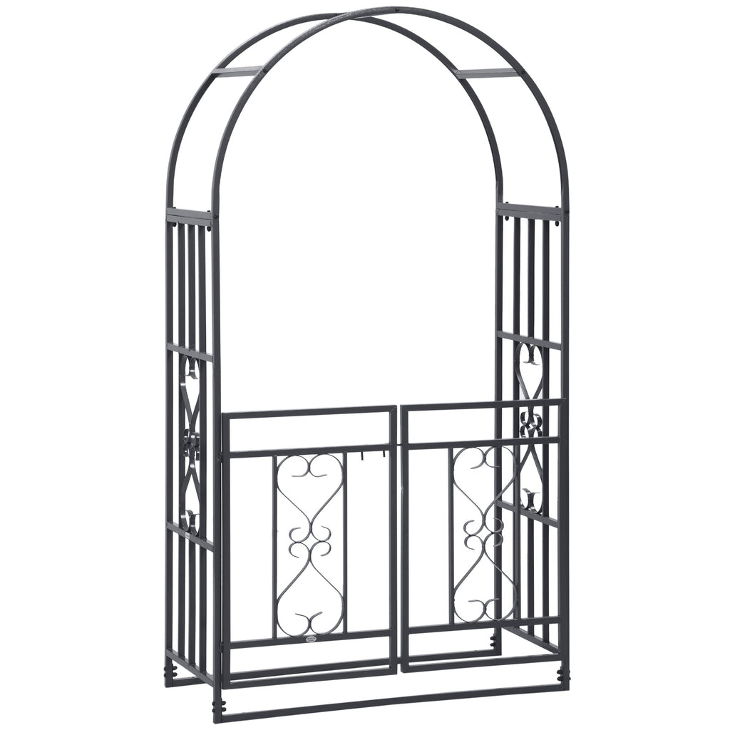 81" Metal Garden Arbor with Double Doors, Locking Gate, Climbing Vine Frame with Heart Motifs, Arch for Wedding, Bridal Party Decoration, Grey