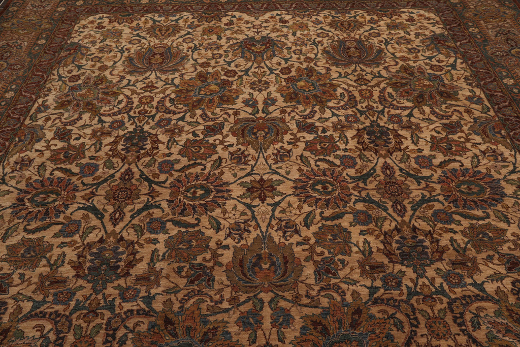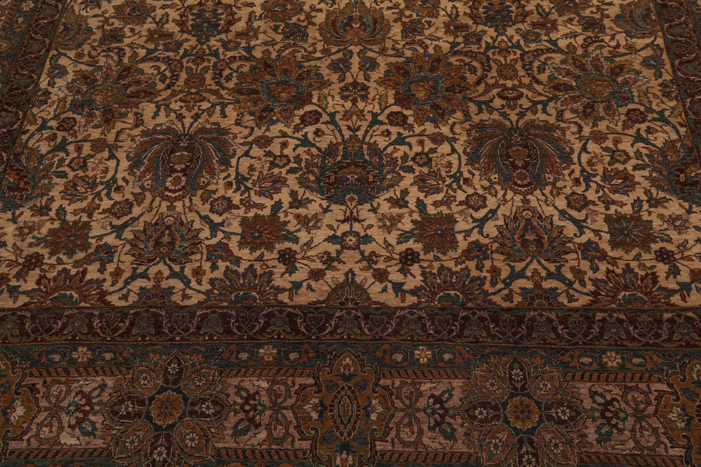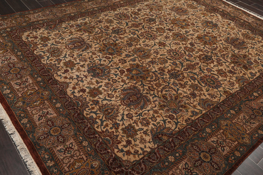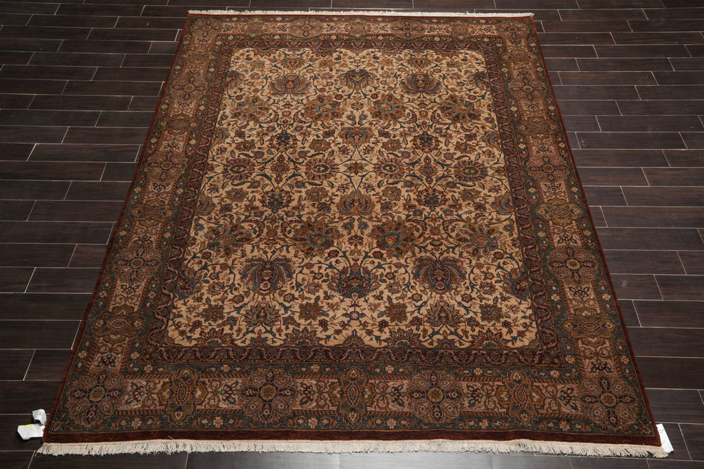 This is a beautiful Beige, Chocolate, Teal Color Hand Knotted, Persian Oriental 100% Wool Rug. The rug is high quality and has about 300 KPSI.