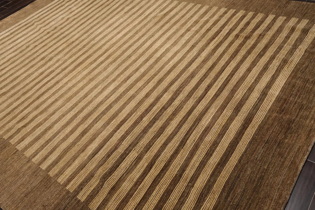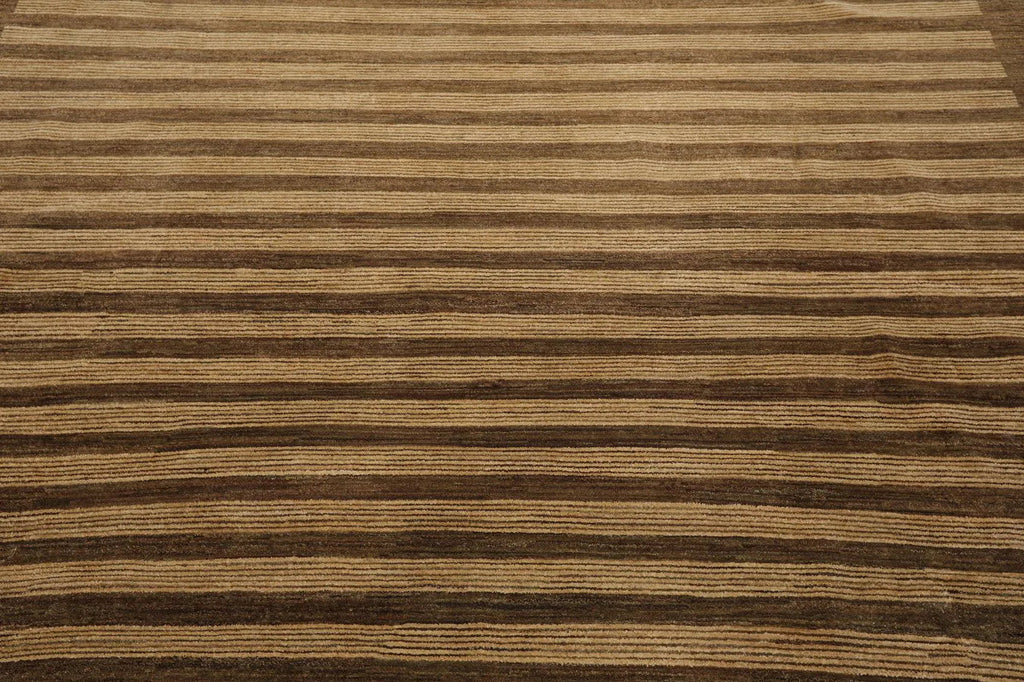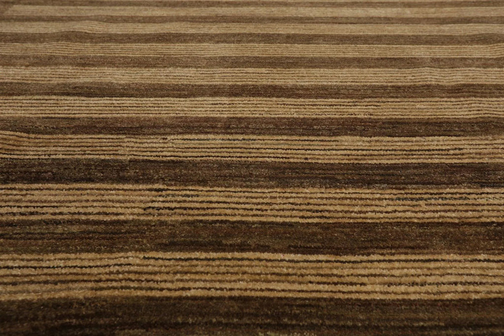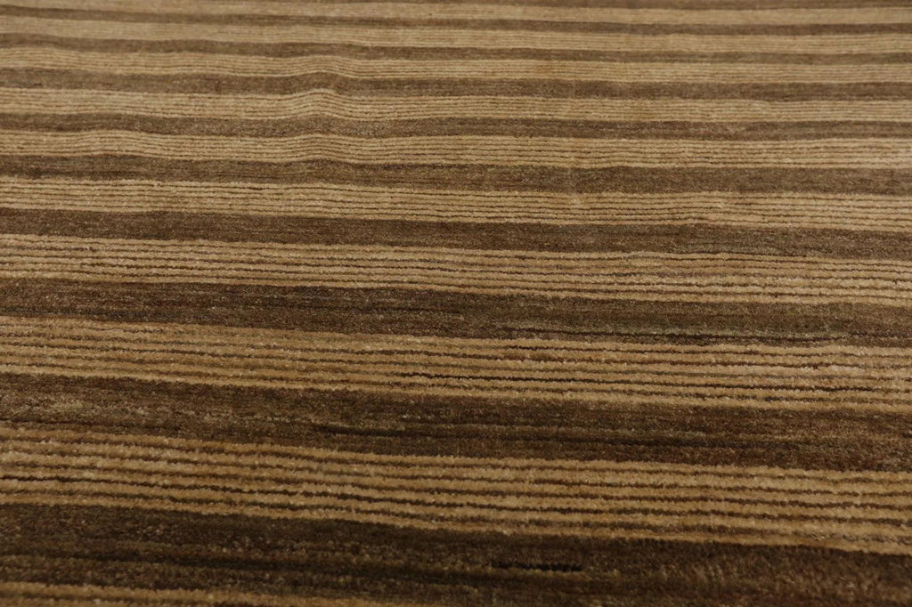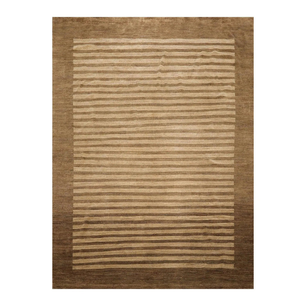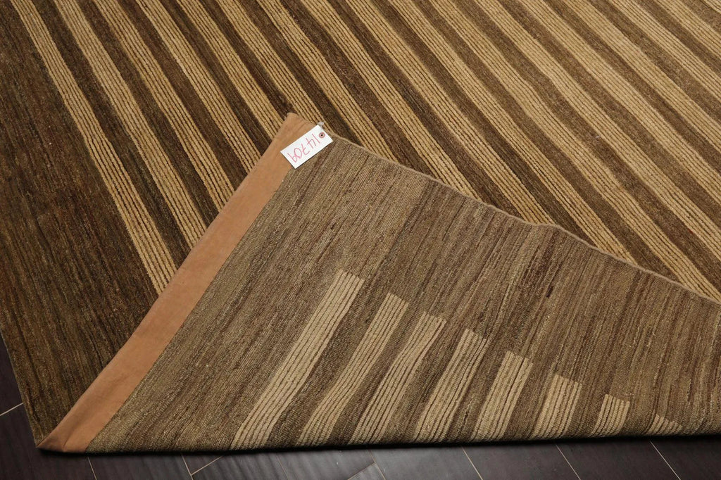 8'10'' x 11'9'' Hand Knotted Tibetan Wool Stripes Modern Stripes Area Rug Brown