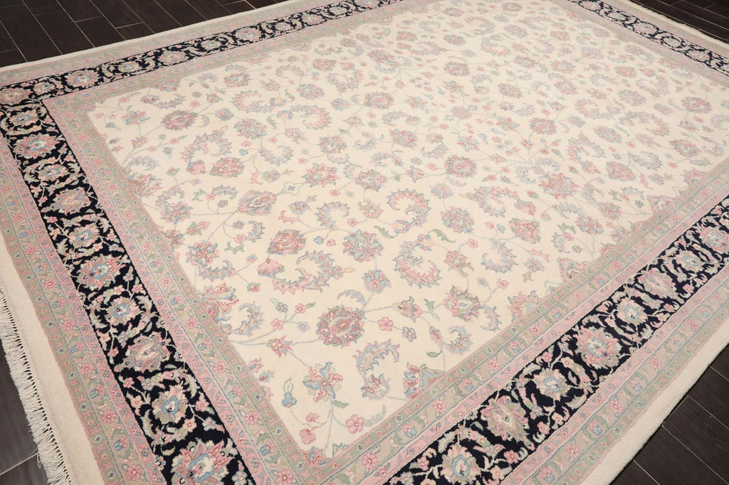 This is a beautiful Ivory, Black, Rose, Aqua, Blue, Multi Color Superfine Hand Knotted Persian Oriental Area Rug 100% Wool Rug. Its elegant style is easy to decorate with and perfect for living room, dining room, bedroom or anywhere in the residence or office.